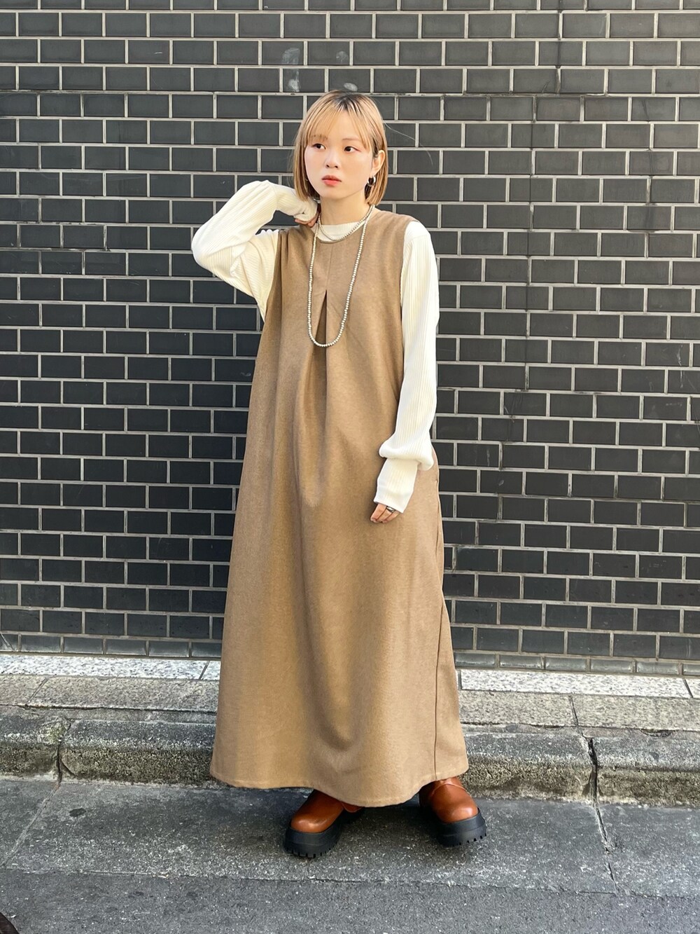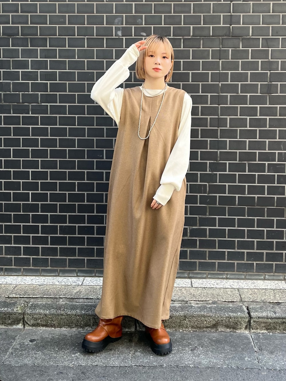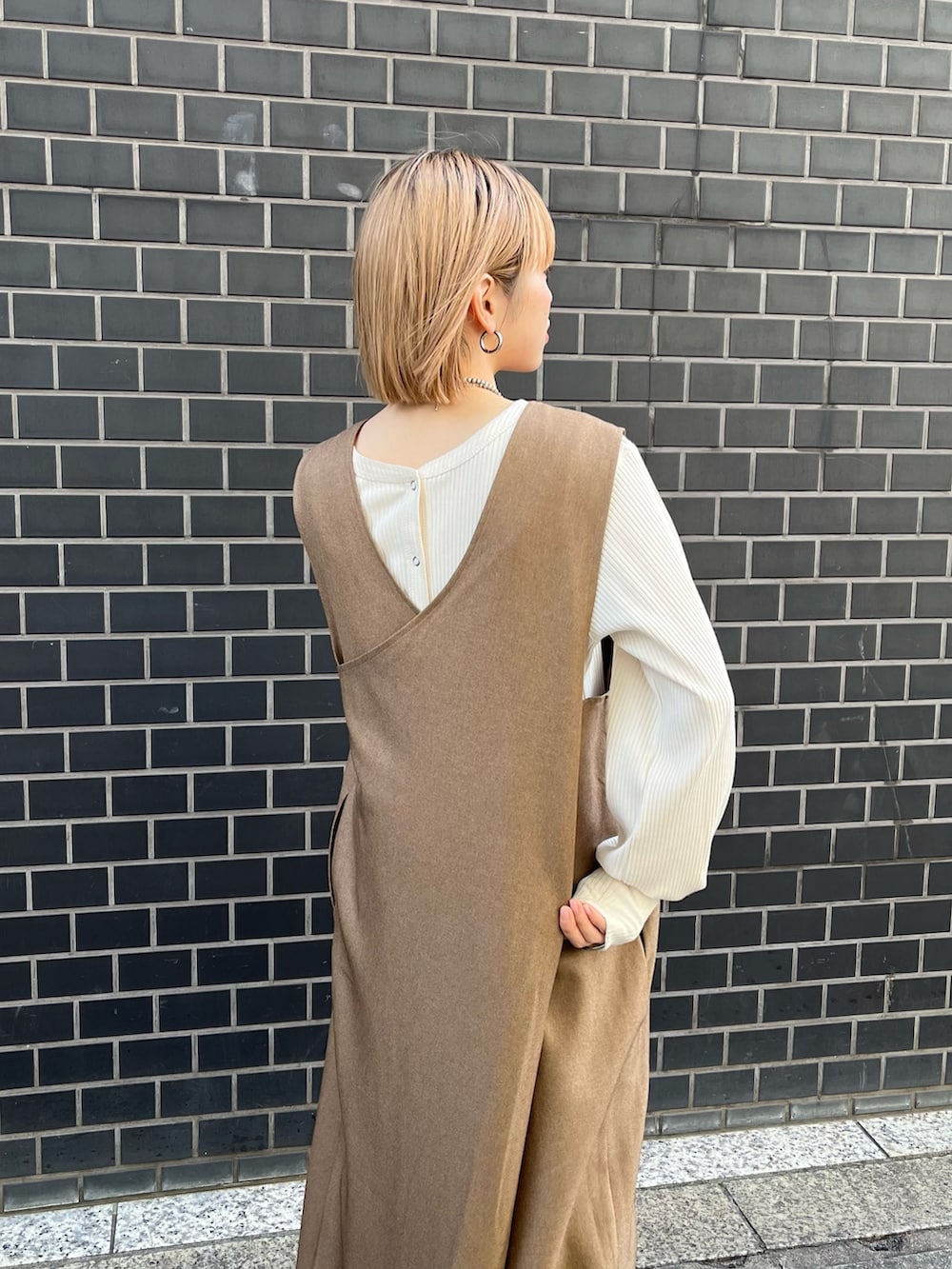 ゆったりとしたサイズ感のワンピースですが前タックが入っているのですっきりとした印象になります!◎