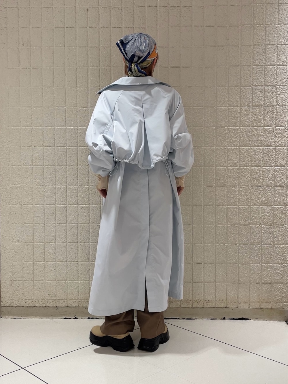 全体的にシンプルな合わせなので頭にスカーフを巻いたのがポイント👆🏻✨