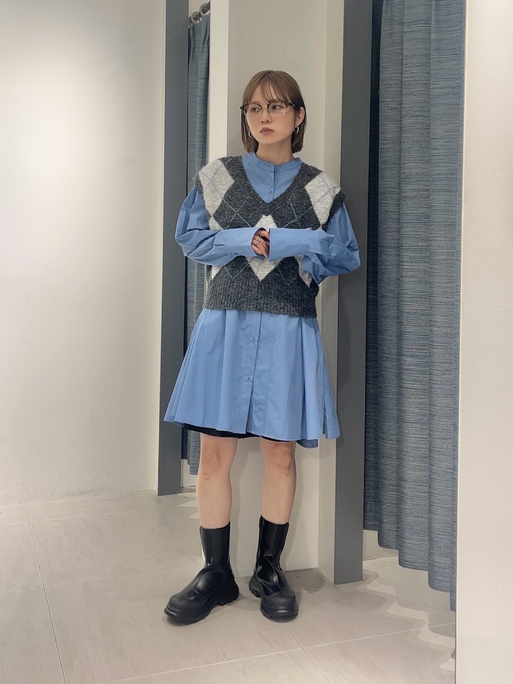 生地をたっぷり使ったフレアのミニワンピース◎気温が下がってきたのでニットベストのレイヤードも可愛いですよ^_^