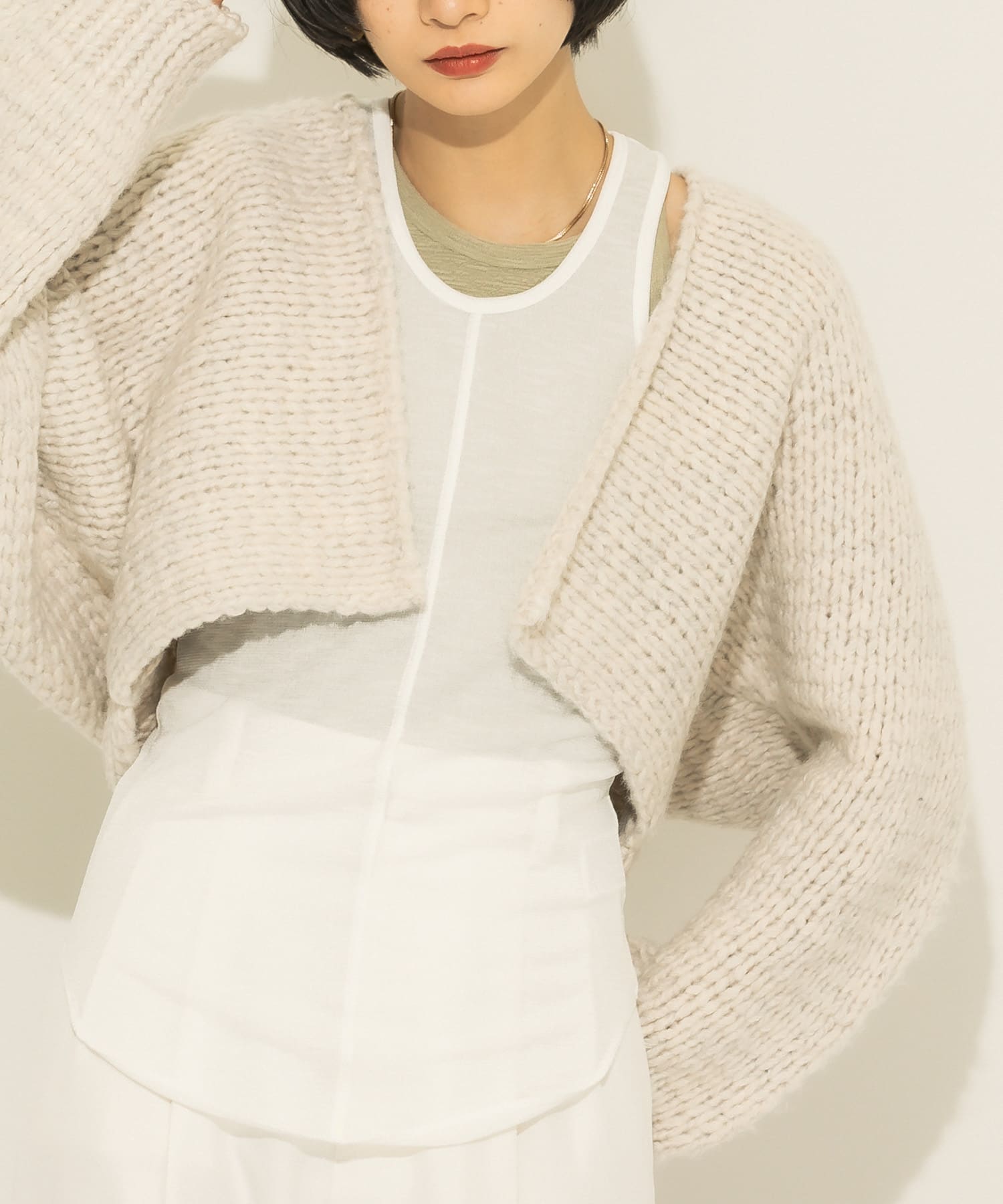 透け感のある素材やノースリーブで肌見せすることで、黒でも重苦しすぎない感じにしました。