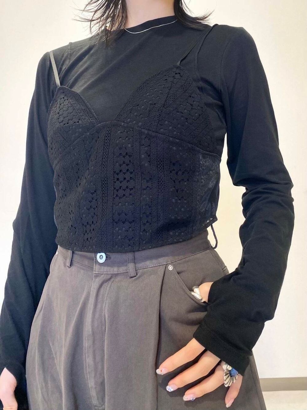 レースコルセットは、他にもゆったりしたTシャツやブラウス、シャツと合わせることで、いつものアイテムを少しレディな雰囲気に変えて着れる万能アイテムです🥰