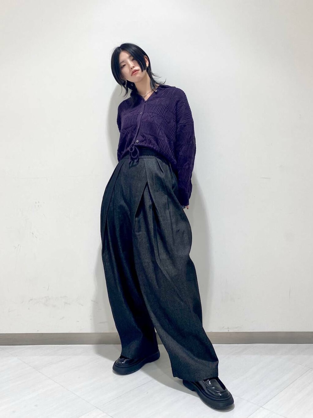 コクーンデニムは大きなタックが特徴的で、スラックスっぽさがあるのでキレイめに着られます。丈が長めなので高身長さんにおすすめです!
