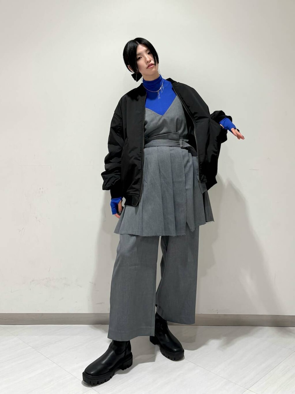 ビッグシルエットのMA-1も、お袖のくしゅくしゅしたデザインがとってもキュートで、メンズっぽくなりすぎないところが推しポイントです、