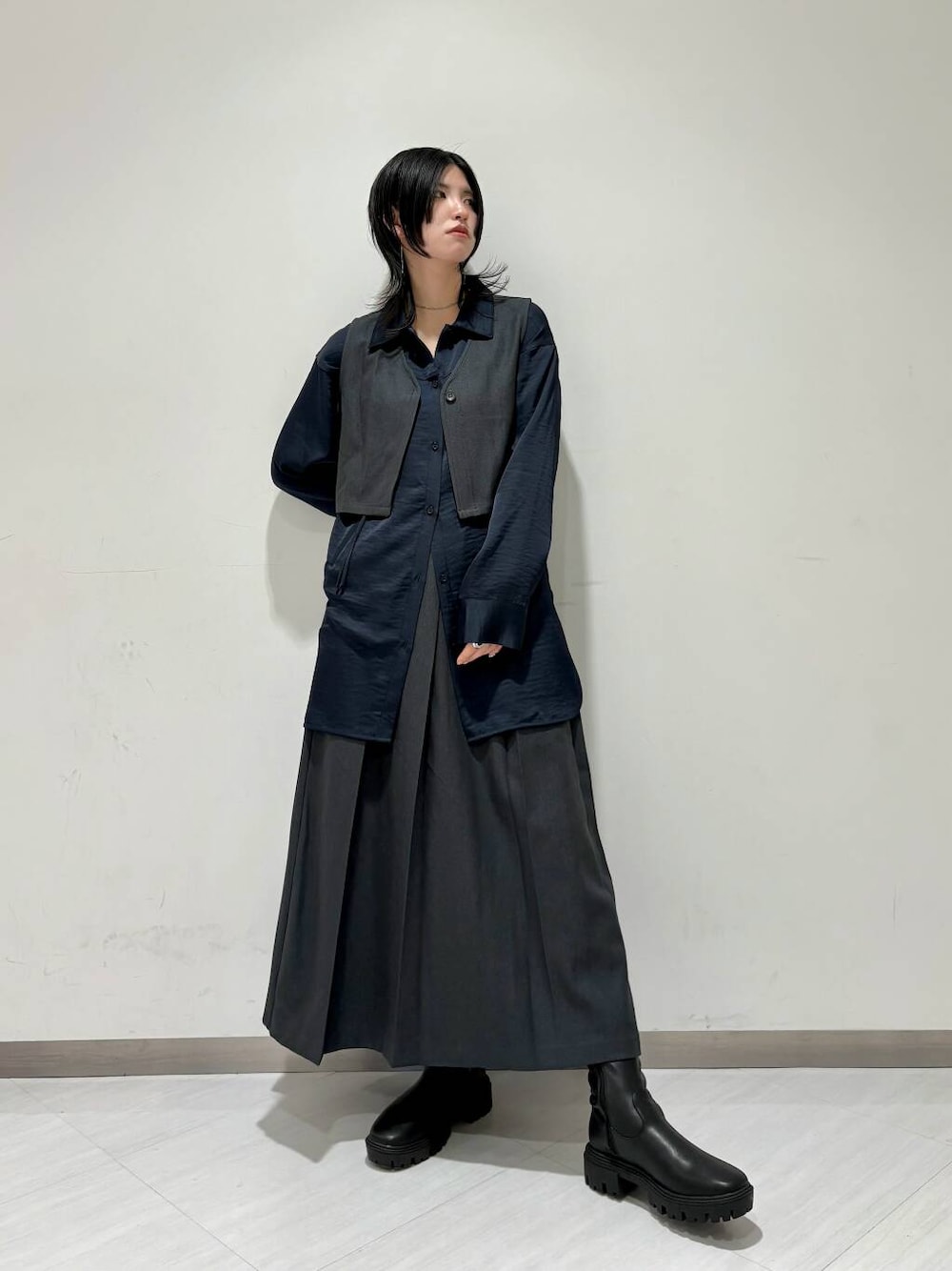 サテンのゆるっとしたシャツをワンピースに合わせて、ハンサムな雰囲気にしてみました。
