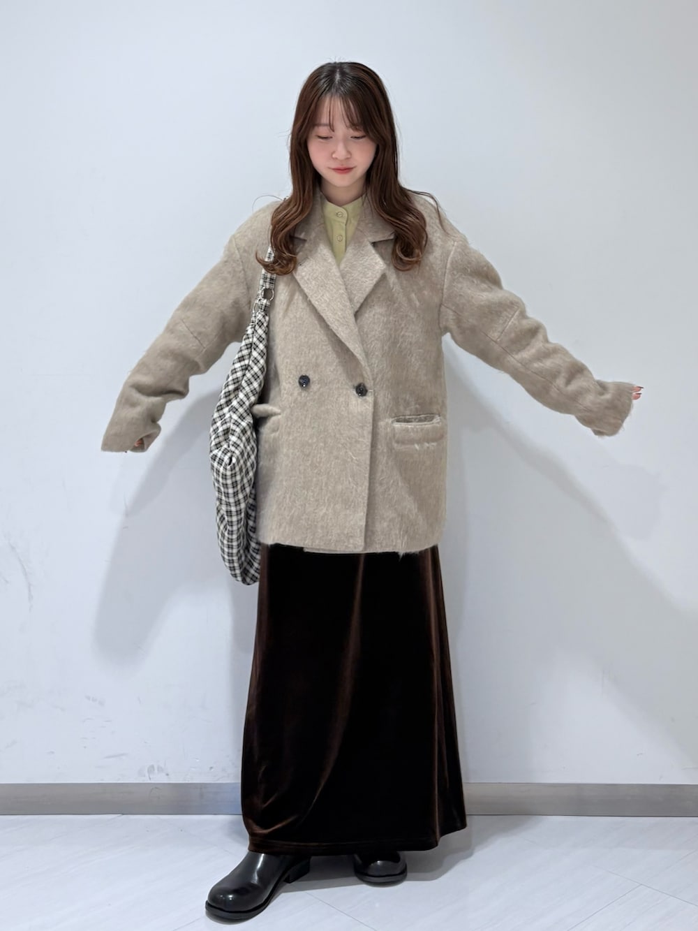 ベロアのスカートは身長152センチでウエスト折り返して着用しています!