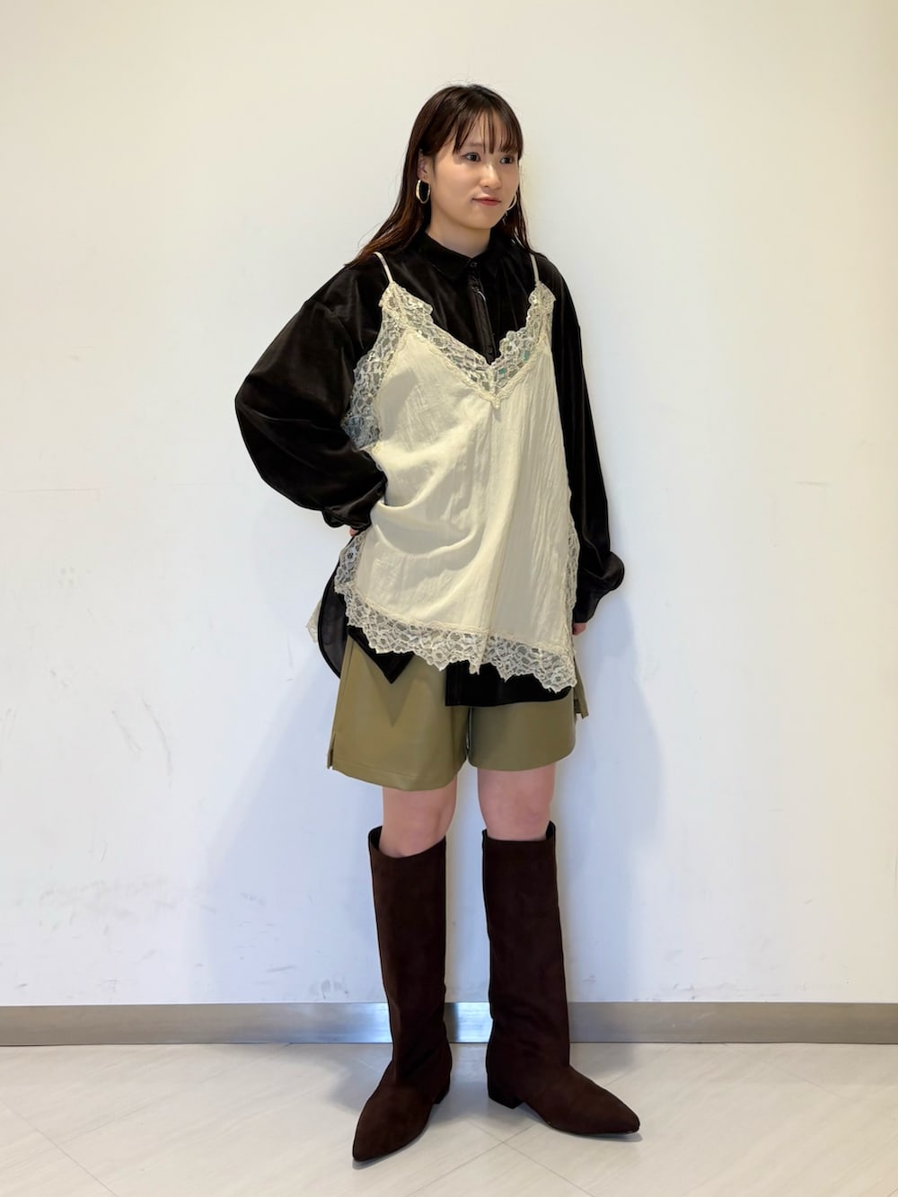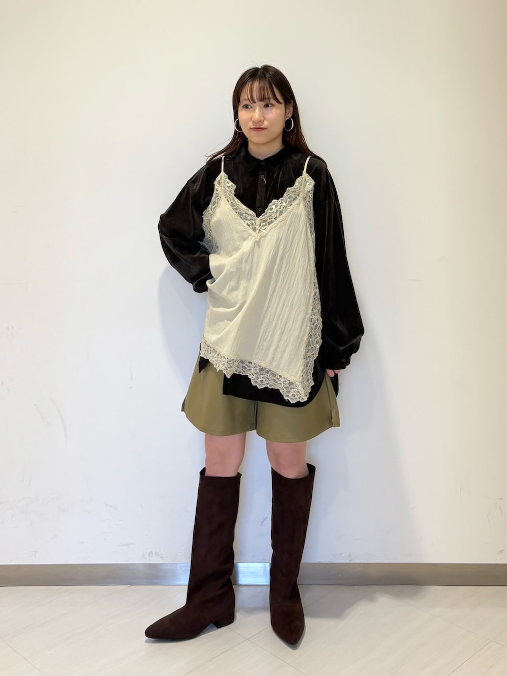 レースキャミは、今回のようにシャツ合わせでも可愛いですし、丈が短めのニットを上から重ねてもバランスよく着れますよ〜!