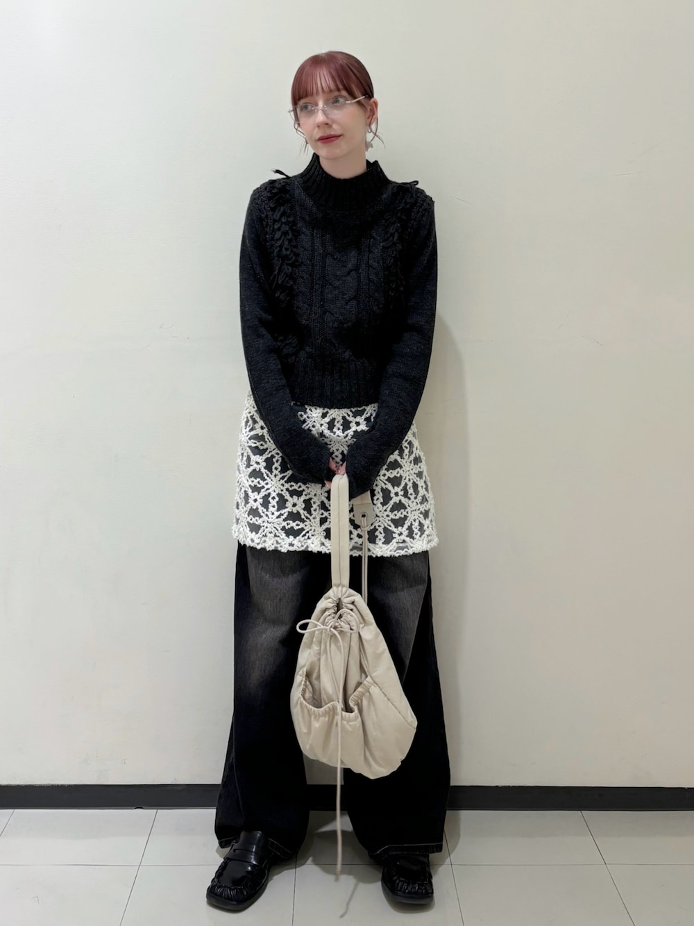 ボリューム感なく着られるケーブルニットをレイヤードアイテムで合わせてみました👢