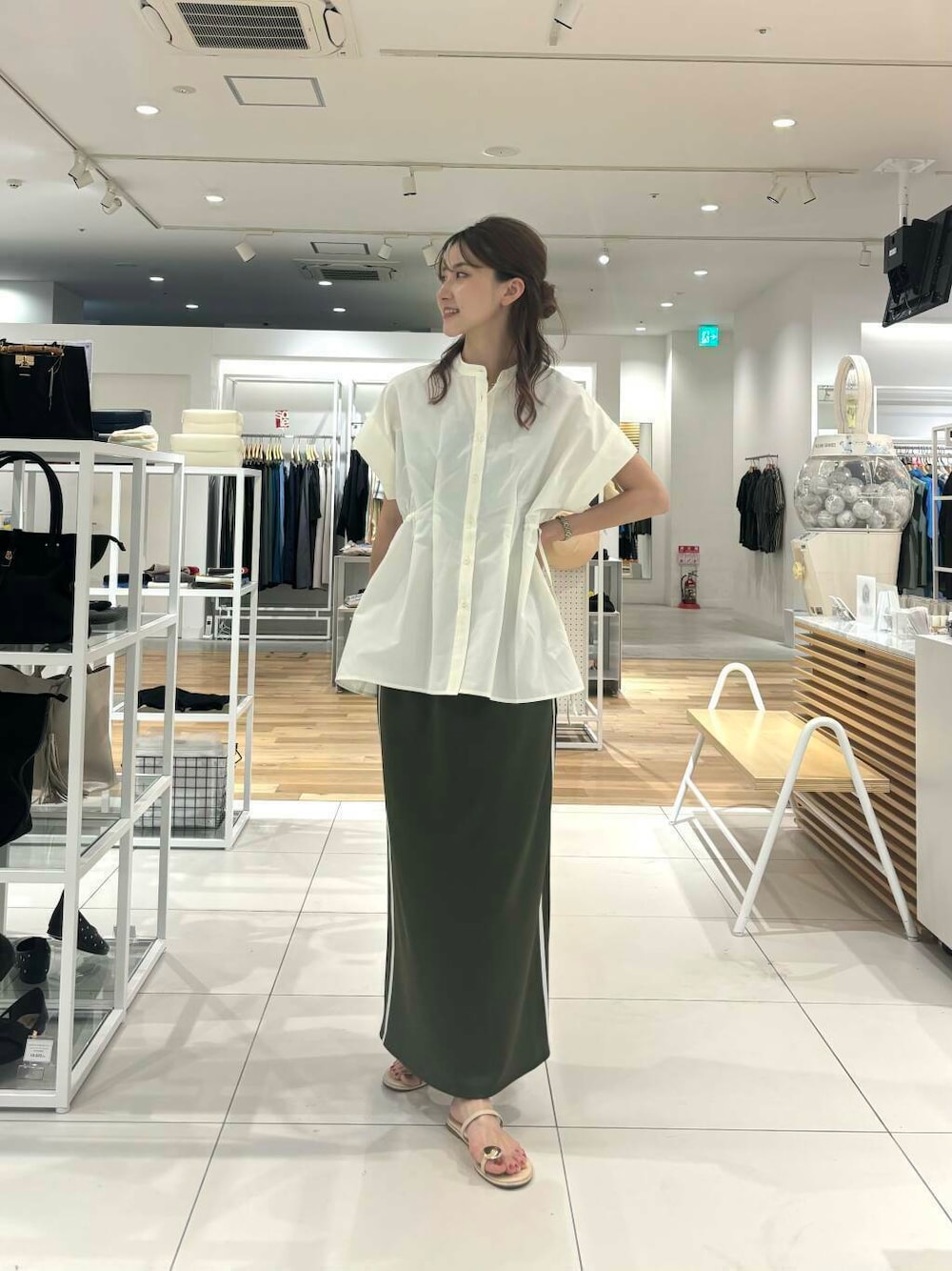 ボトムスはタイトスカートで合わせて