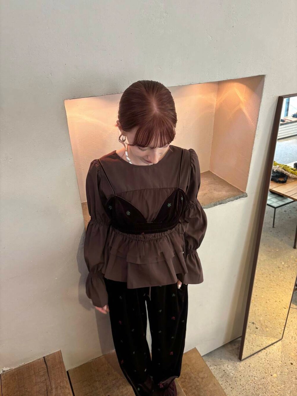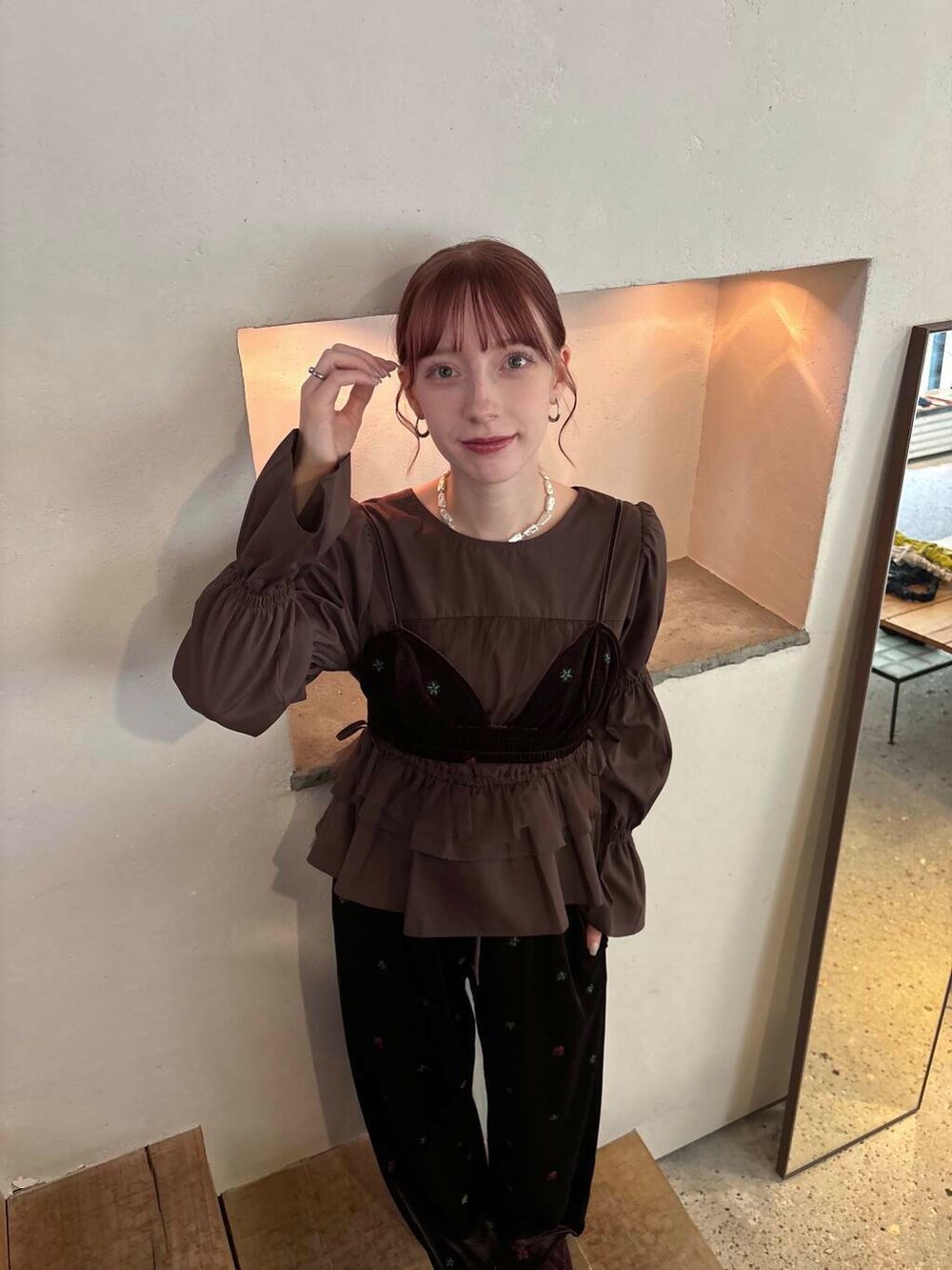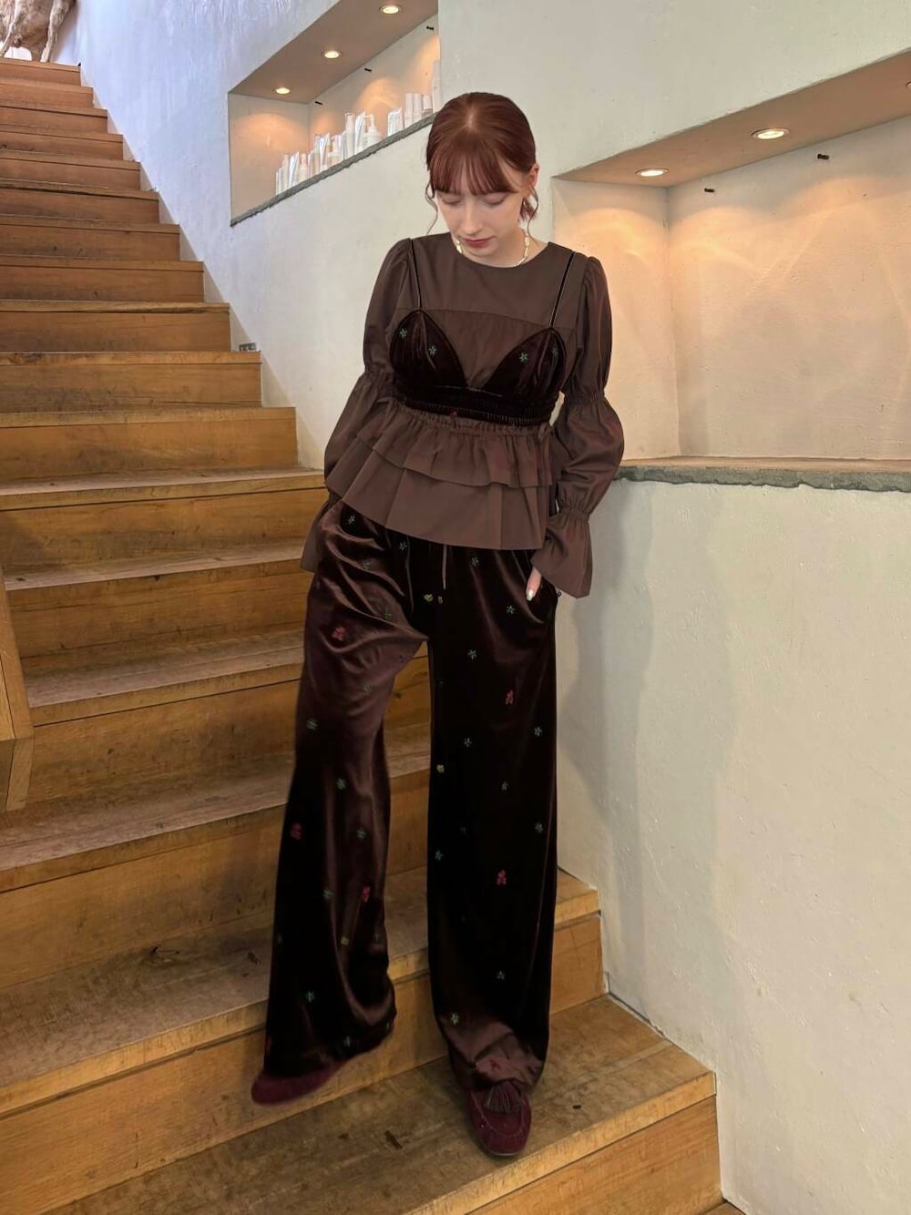 秋トレンドのベロア素材で同じ色合いでもバランスよく合わせていただけます✨