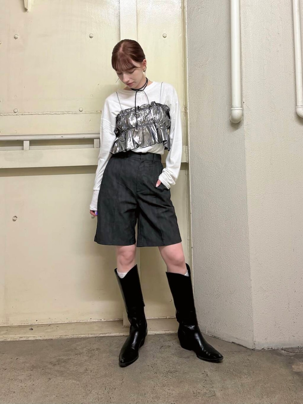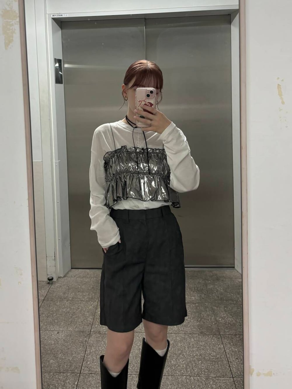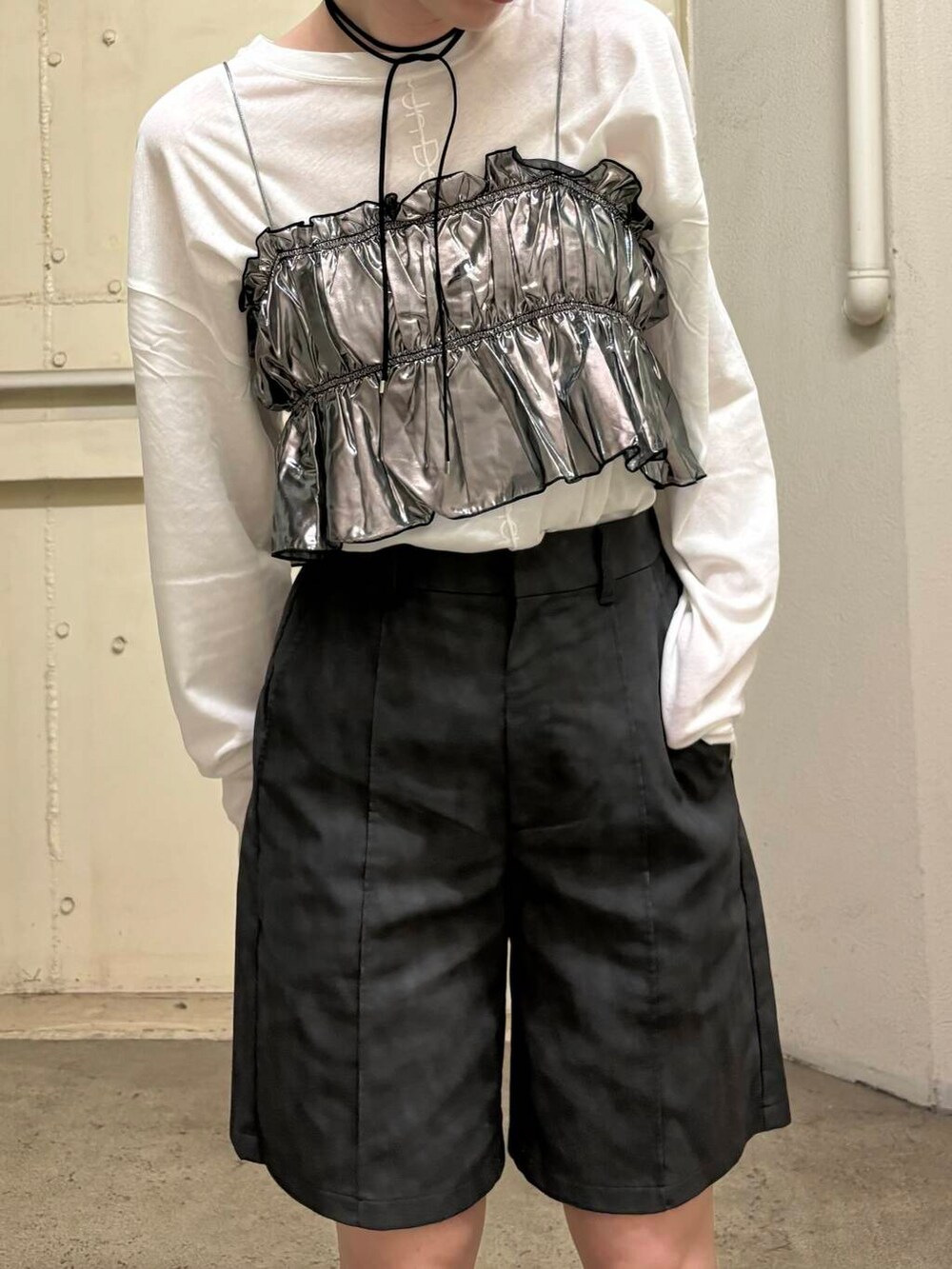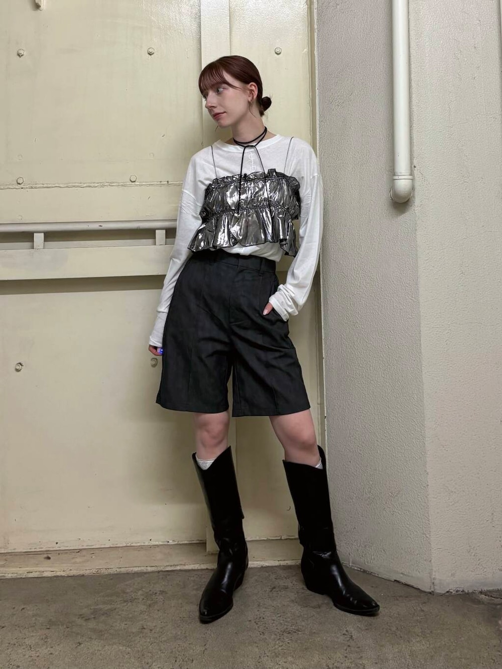 ハーフパンツにロンTEEというシンプルなコーデにシャイニービスチェを合わせるだけで、一気にオシャレ見えします🪽✨