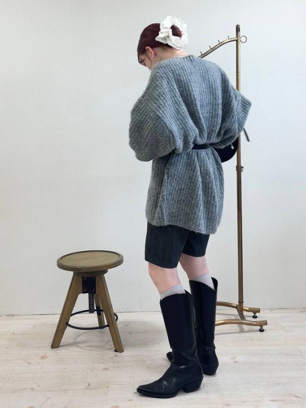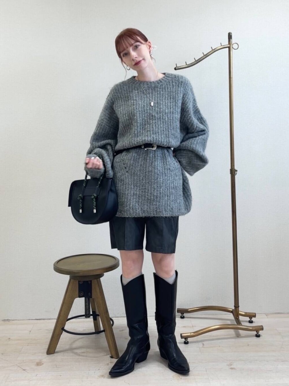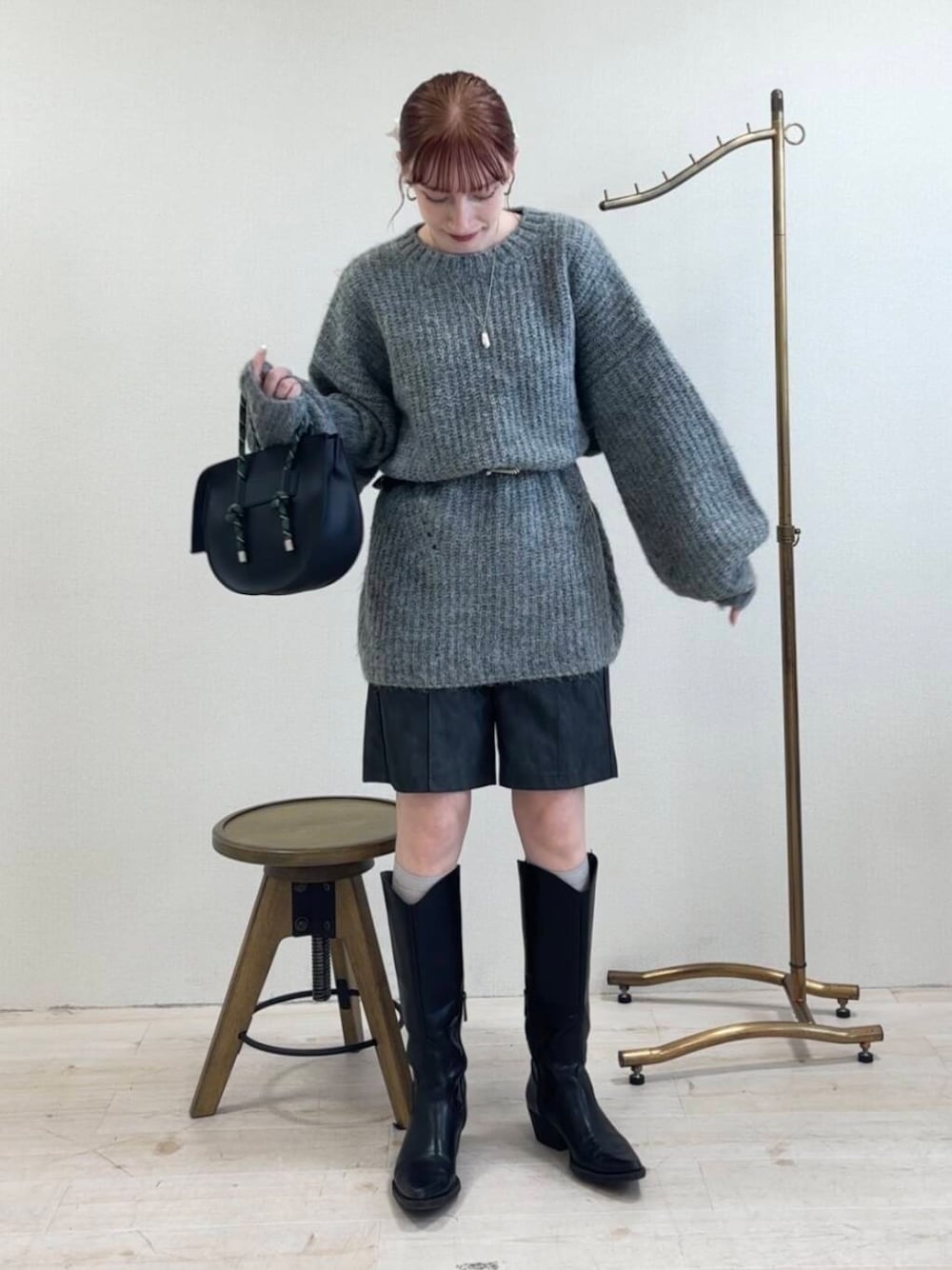 ボリューム感がかわいいニットワンピですが、ベルトでウエストラインを作って少しスッキリめでも着れるように合わせてみました!🖤