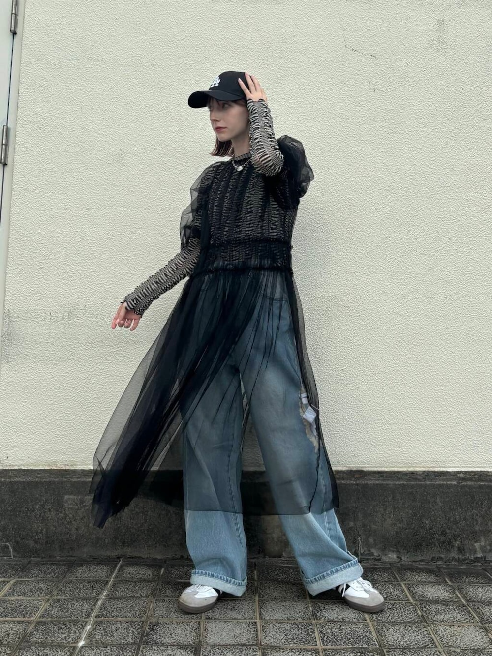 甘くなりがちなチュールワンピースを全体的にカジュアルにまとめてみました!キャップやスニーカーの小物合わせで雰囲気をガラッと変えられるアイテムです🪄