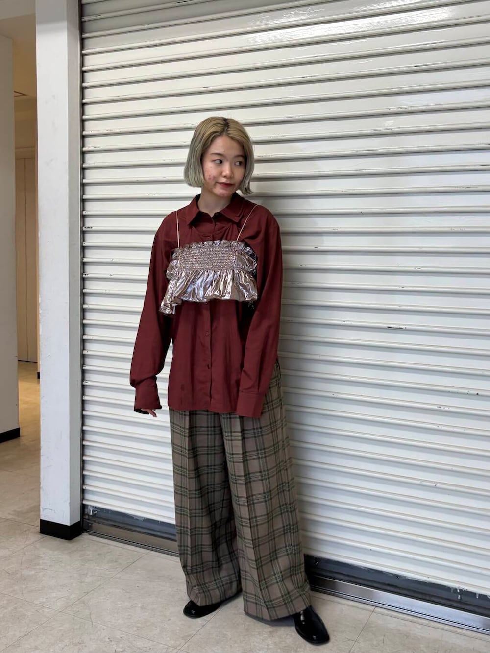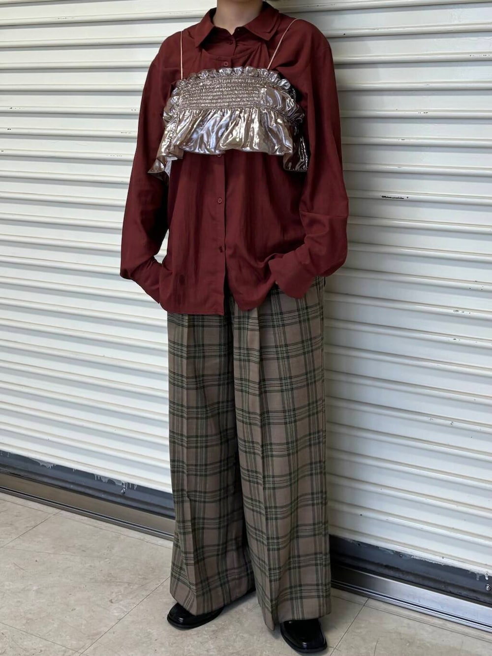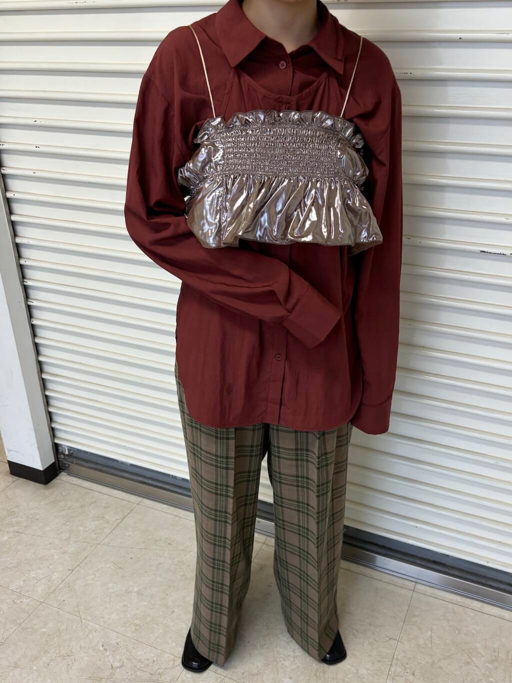 2wayで着れるボルドーシャツをメインに大人っぽい秋コーデを組んでみました🍷