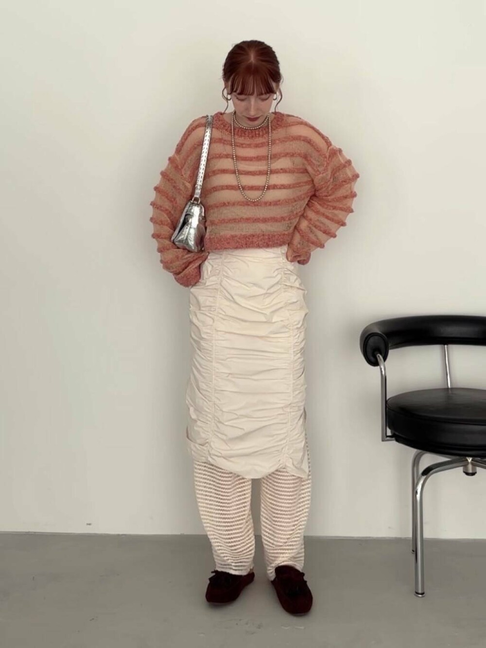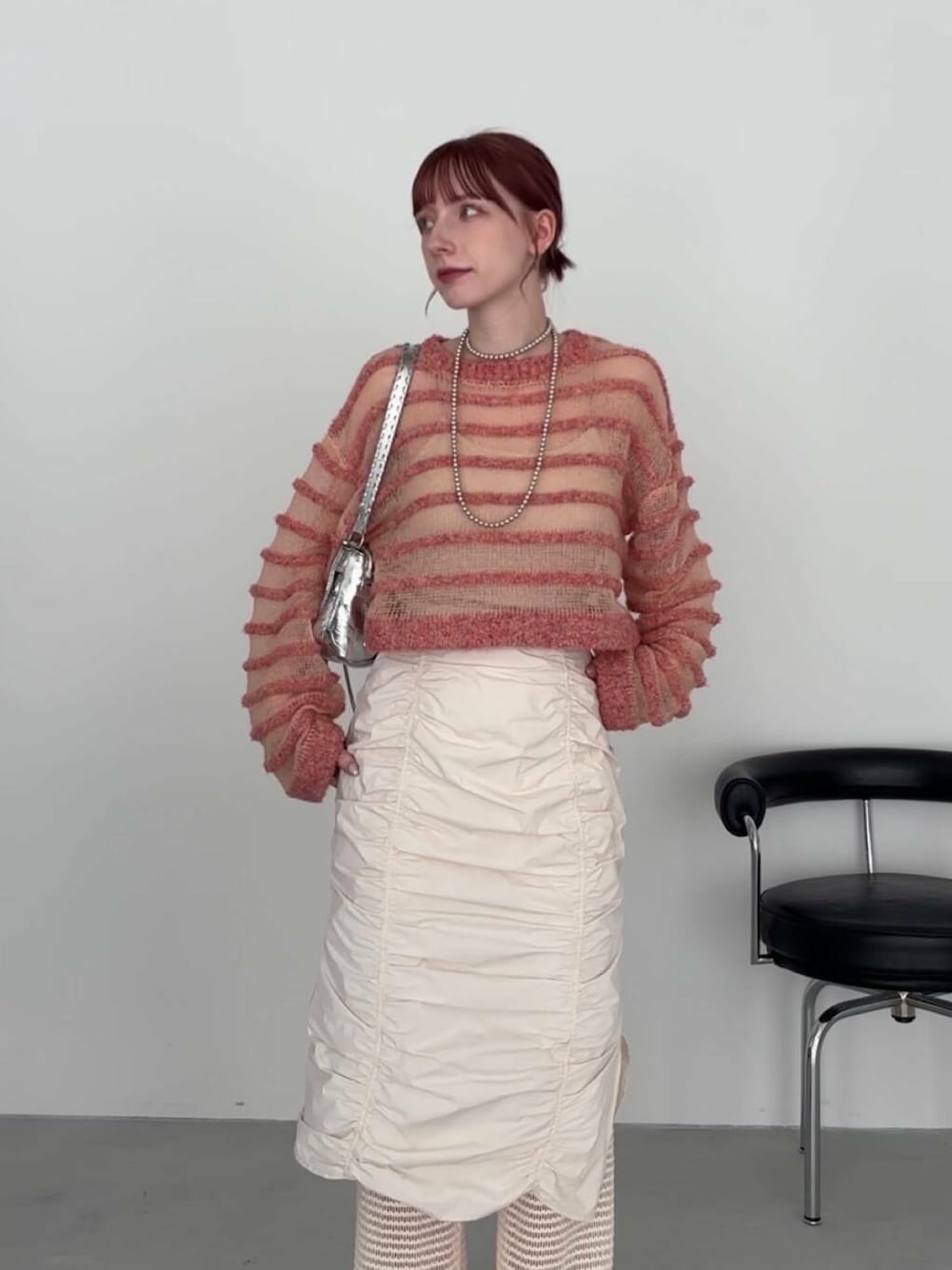 気温が難しい時期にちょうどいいシアーニットになってるのでインナーの調節次第では季節も長く使っていただけます!丈感のバランスも◎