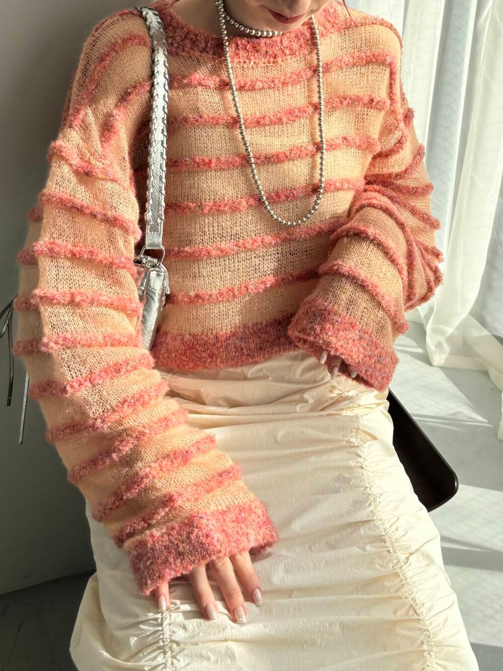 もうすぐ店頭でも販売予定のシアーボーダーニット🩷