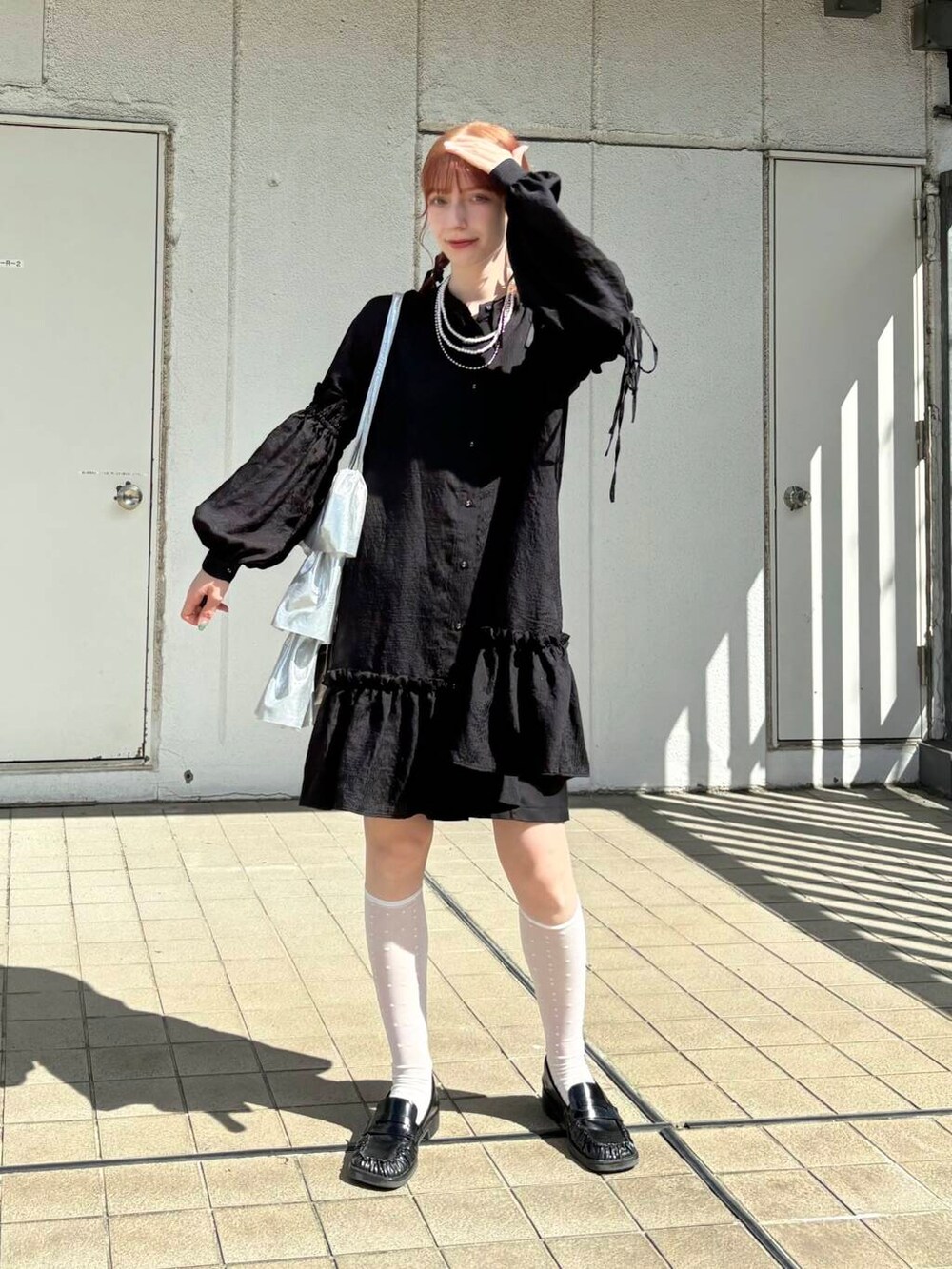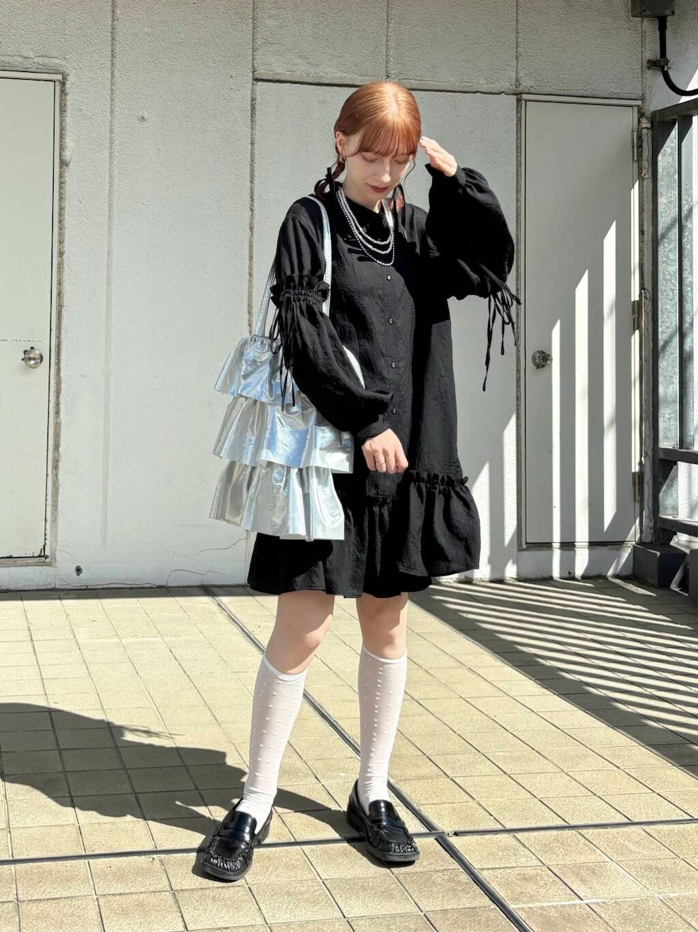 ボリュームミニワンピをフェミニン寄りで合わせてみました🎀