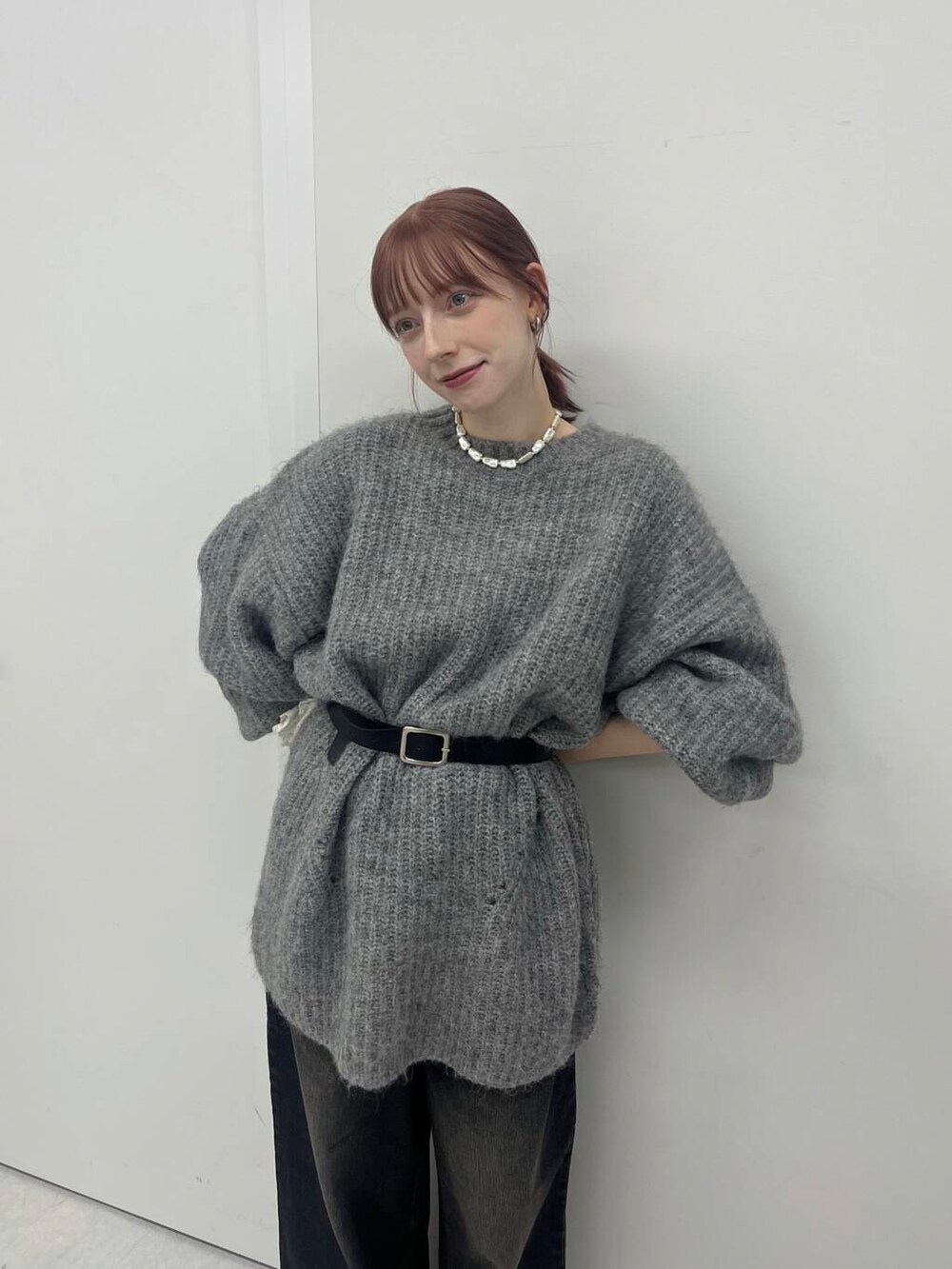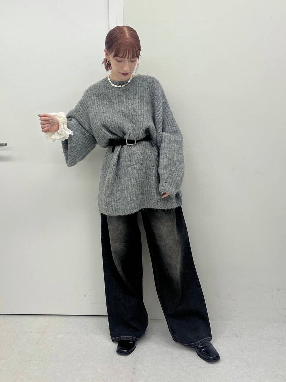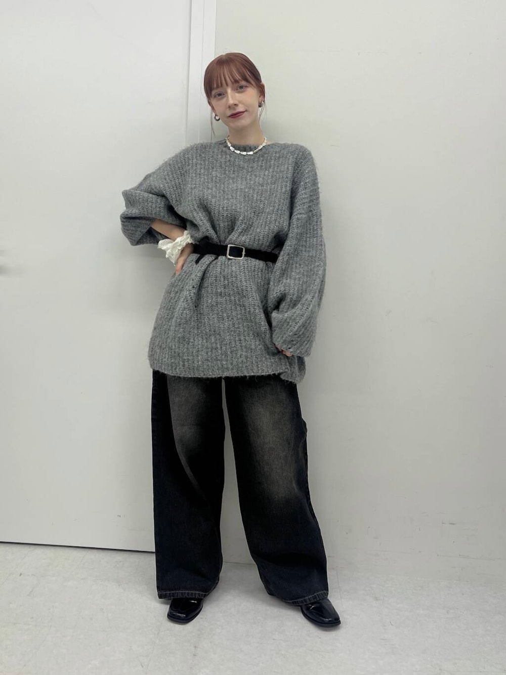 ニットワンピースは甘めになりがちですが、敢えて黒デニムで合わせて小物などでバランスを取って着てみました!