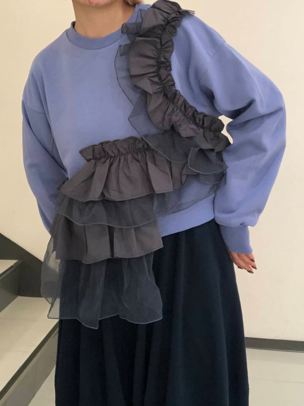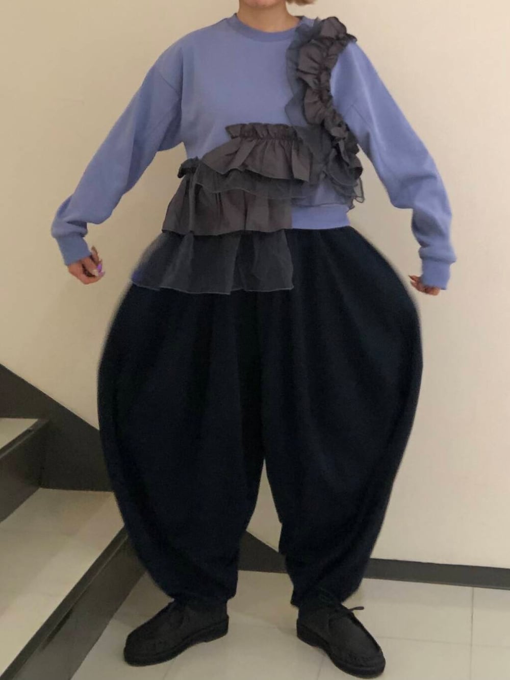 フリルが可愛いスウェットをメインにゆるコーデを組んでみました🪻