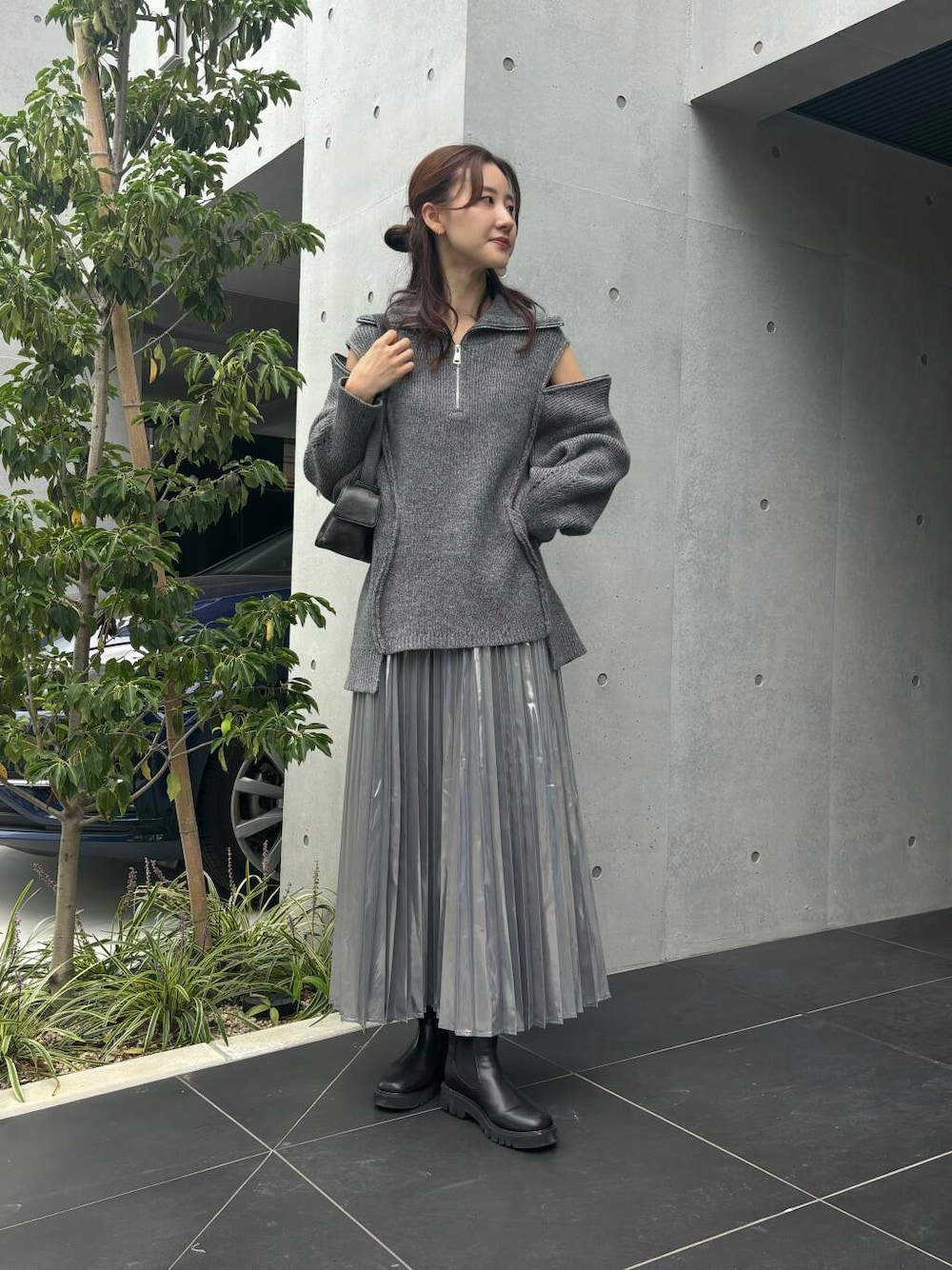 グレーのワントーンコーデを