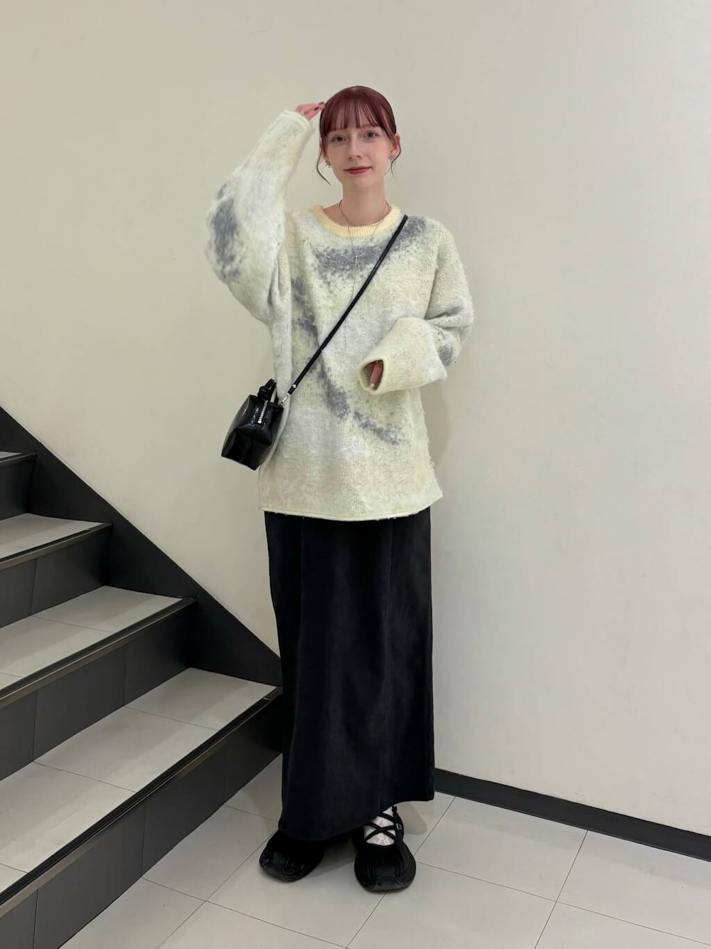 デザインが映えやすいギャラクシーニットにスカート合わせをすることで、クリスマスシーズンのお出かけ用にもオススメコーデになります🤍