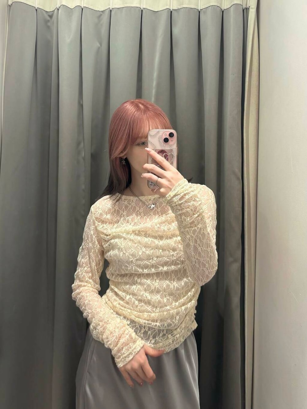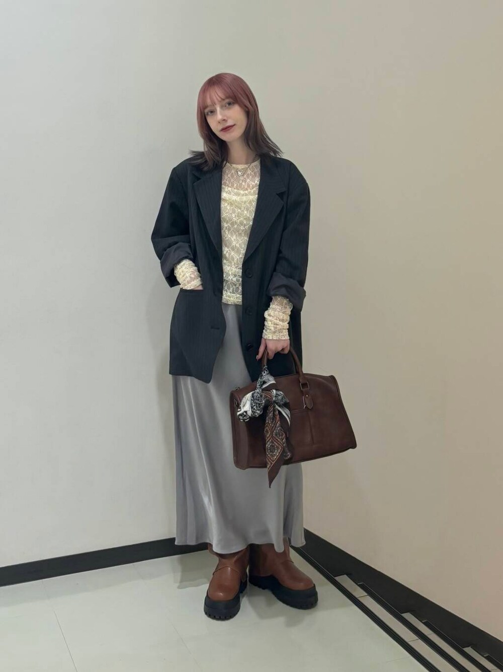 きれいな印象を与えつつ、おしゃれな組み合わせのコーデで着てみました!レースインナーはスウェットなどと合わせて着ても使えるので、ひとつあるとかなり重宝するけどアイテムです!