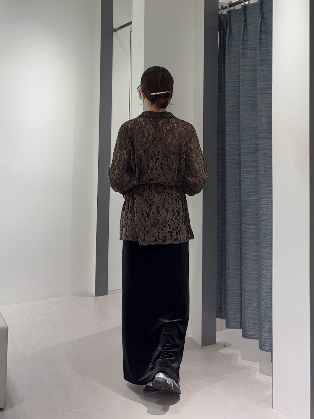 ベロアのスカートは腰周りのラインを拾わないデザインなので、普段タイトなスカートを履かない方にもおすすめです🥂