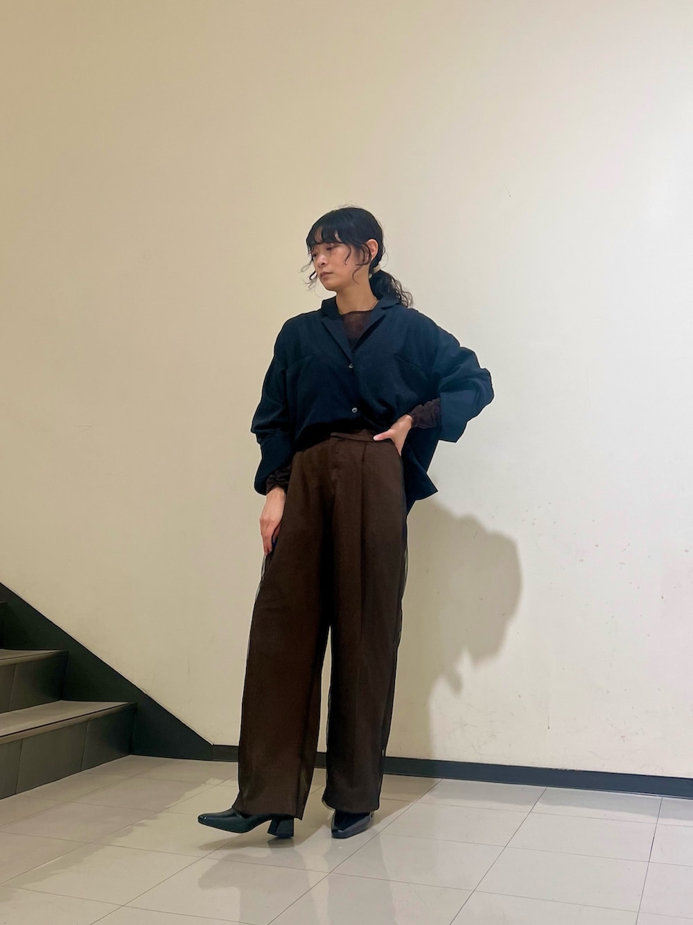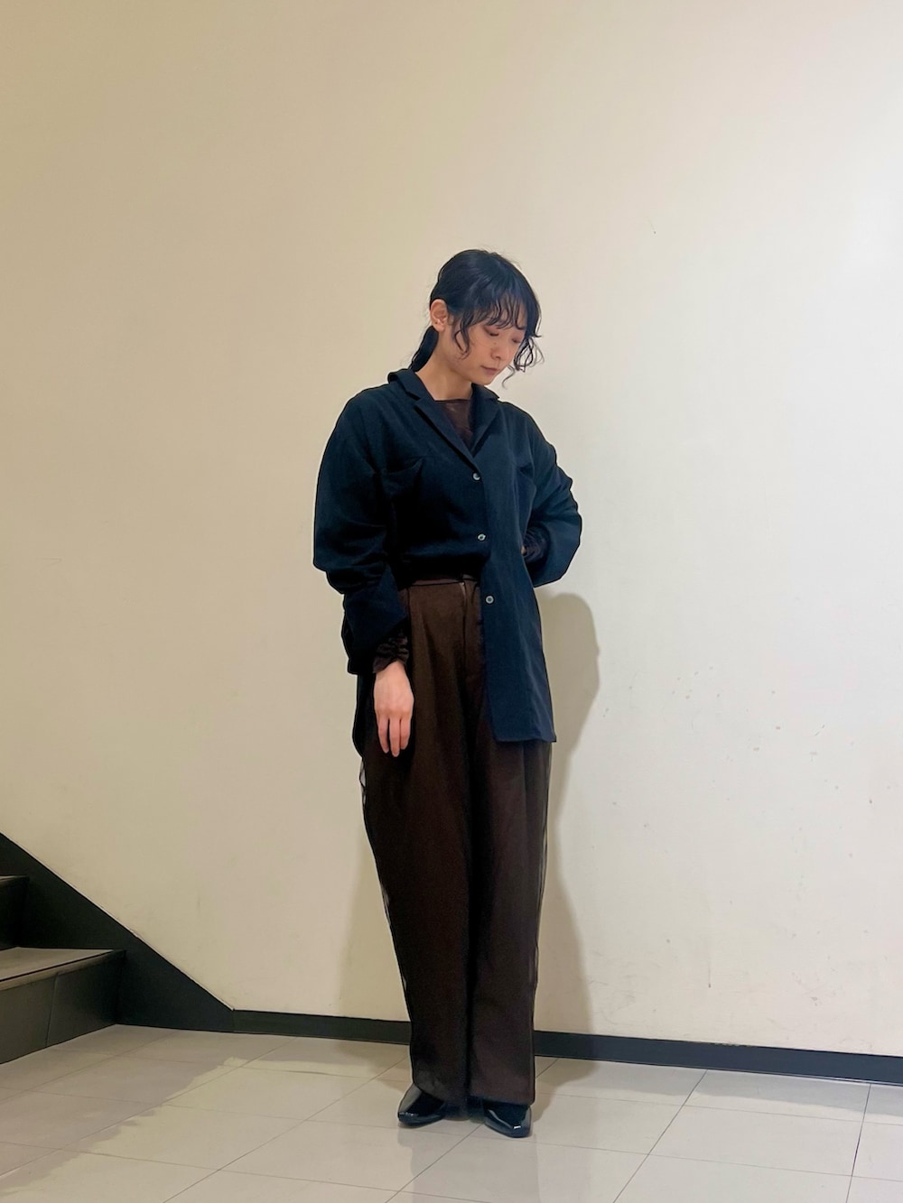 コートの中はちょっとしたお食事などでも着れるような綺麗めで揃えてみました!