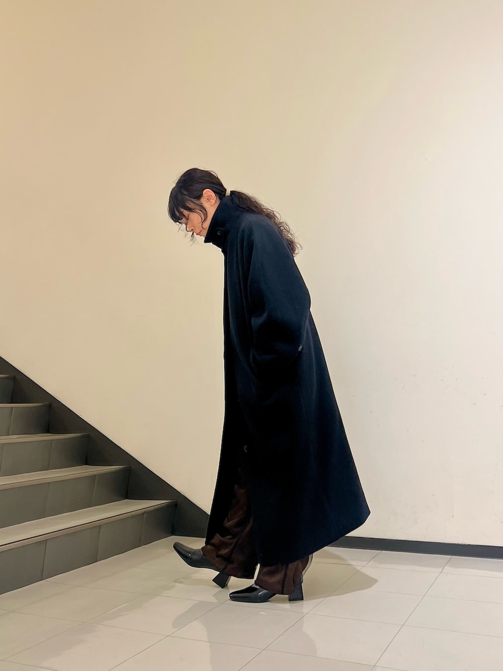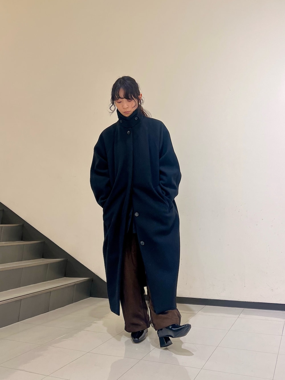 リアルバイしたロングコートはスタンドネックにもなる優れものです🙆♀️