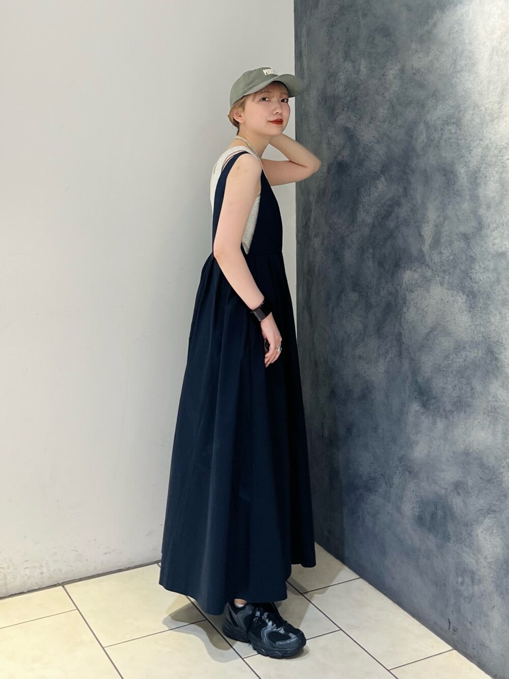 キャップとスニーカーでカジュアルに◎