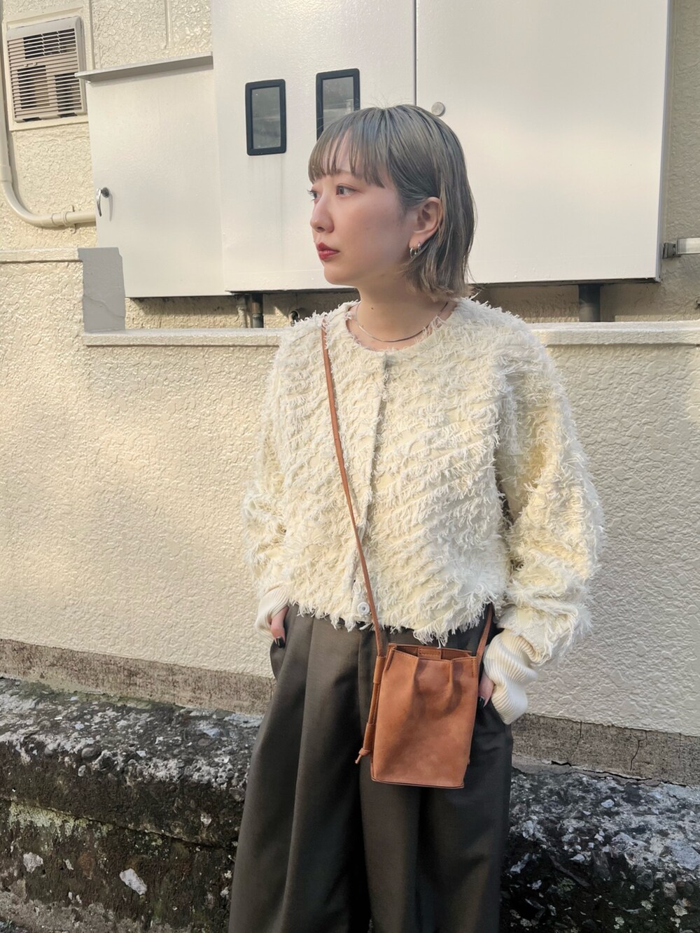 スラックスの裾を絞ってカジュアルな雰囲気に◎