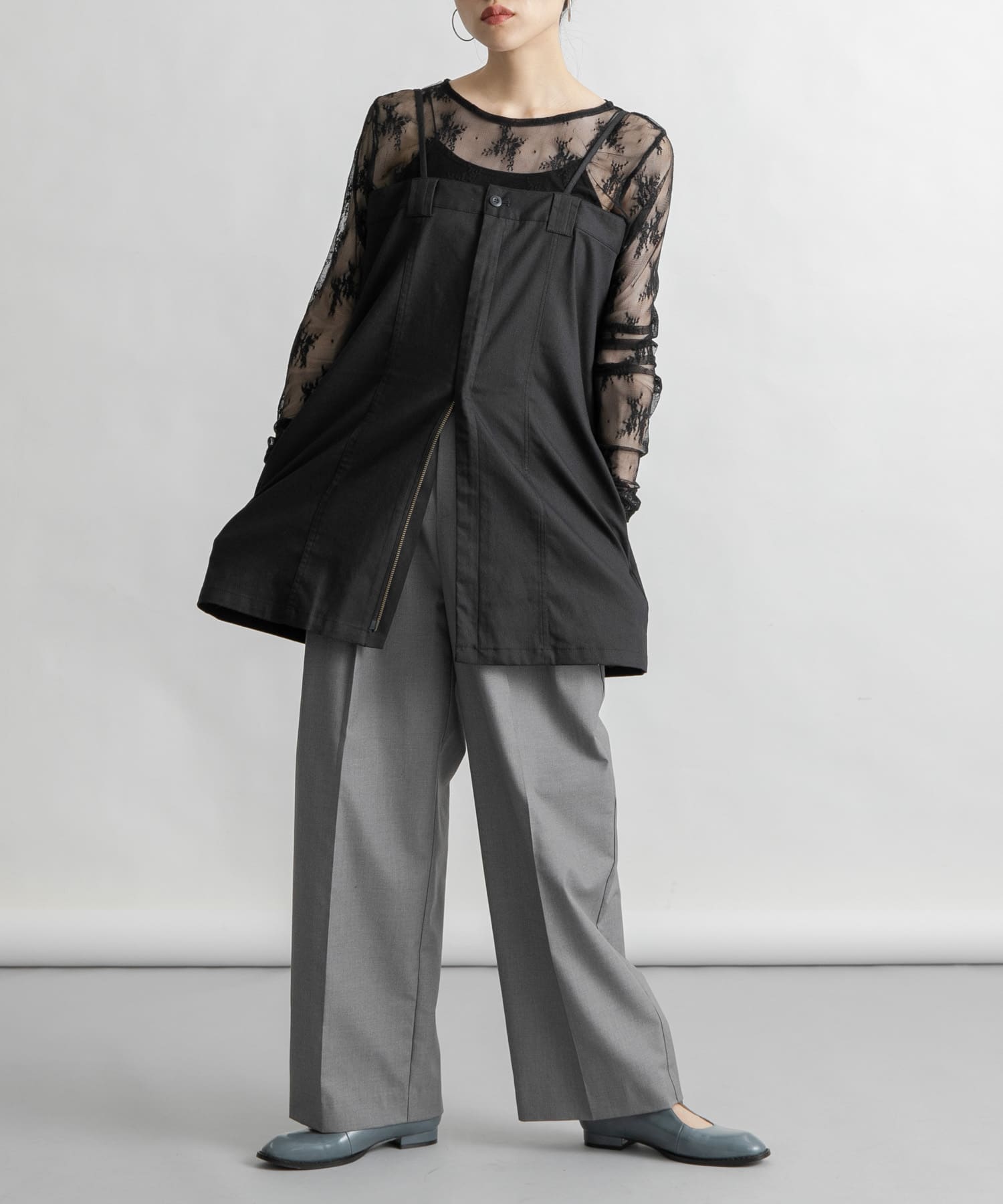 フロントZIPを開けて着ても雰囲気を変えられます!