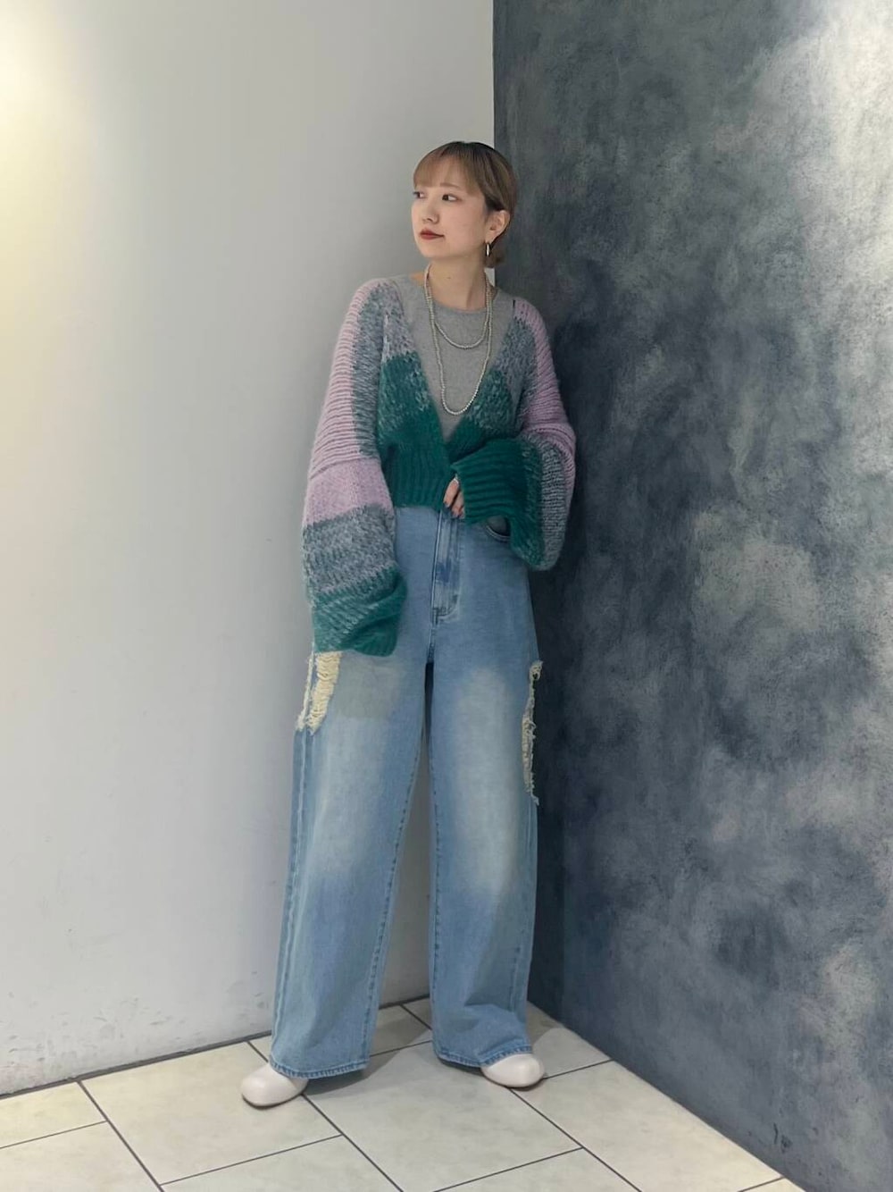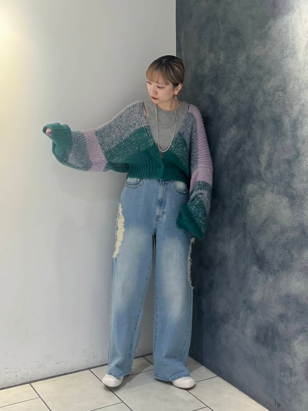グラデーションカラーが珍しいニットカーデ🧶