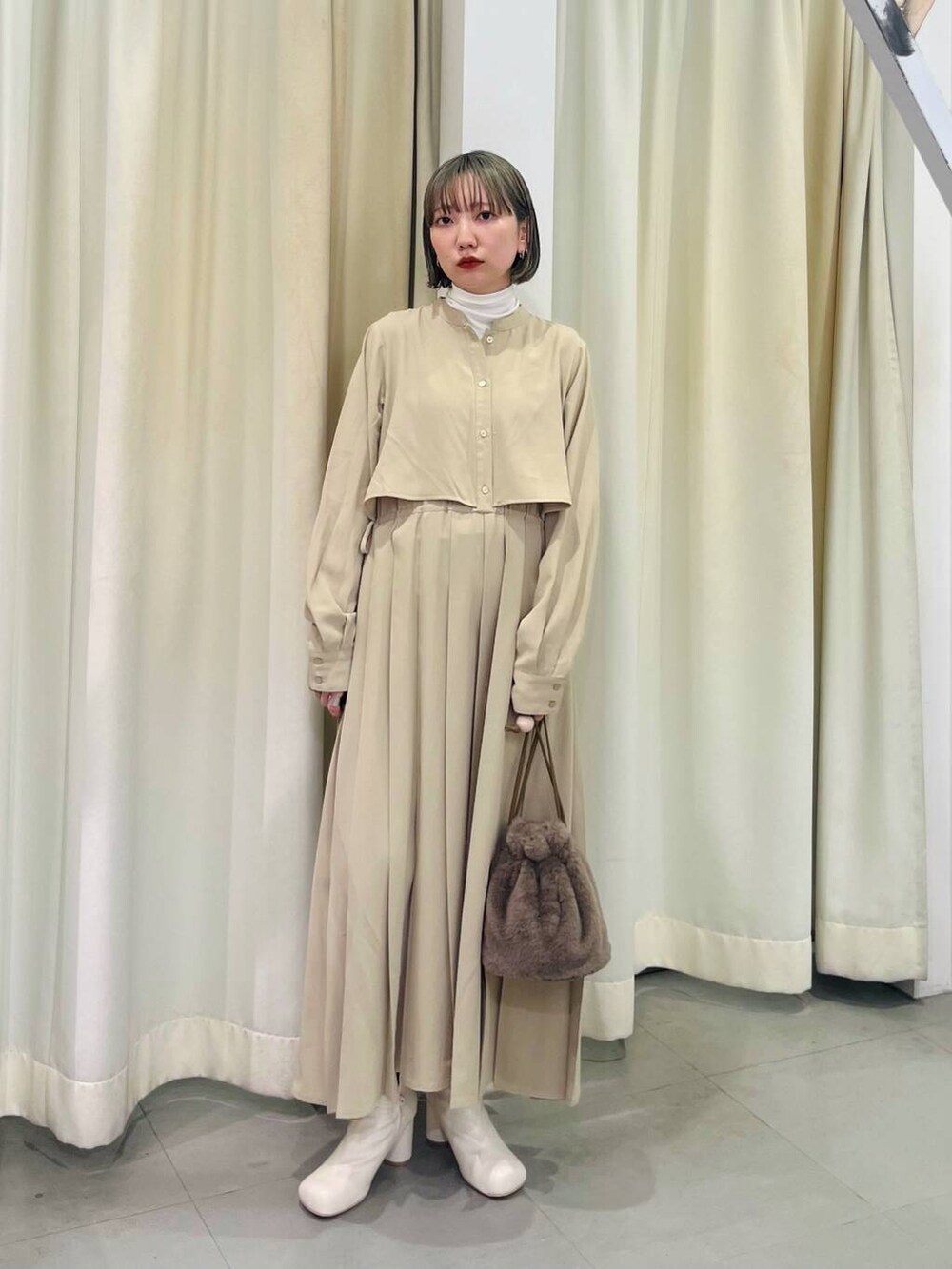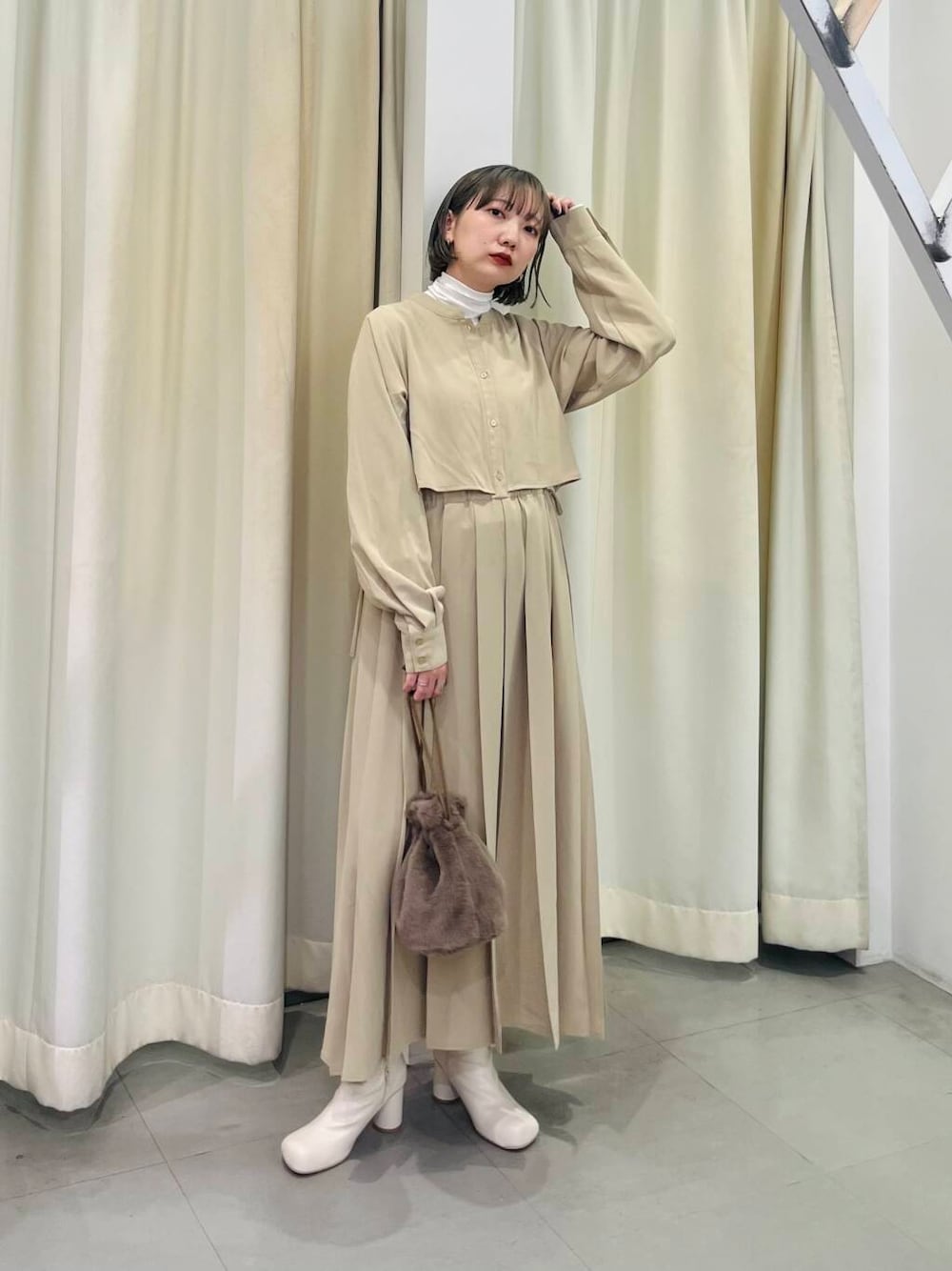 ファーバッグやショートブーツで女性らしく着てみました🥹