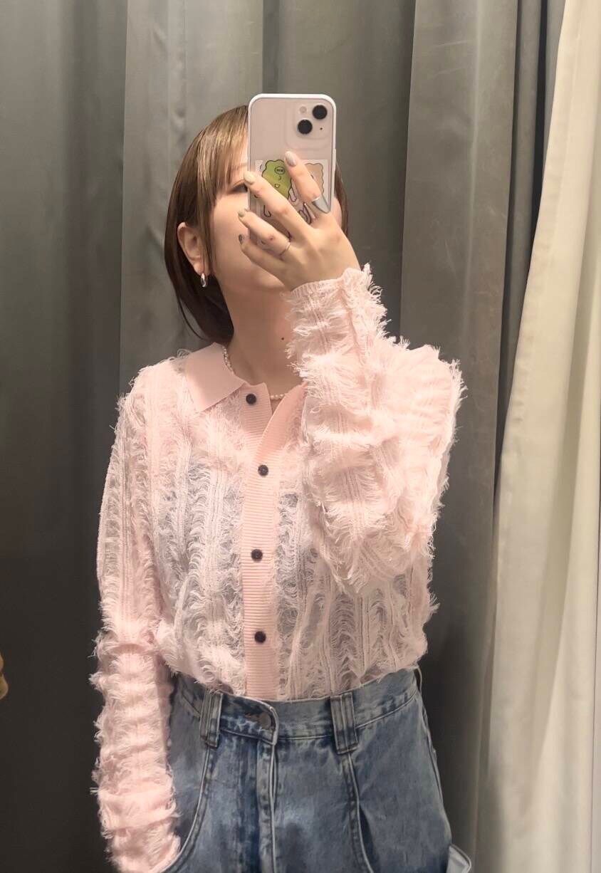 シアーフリンジがかわいいニットシャツ👔