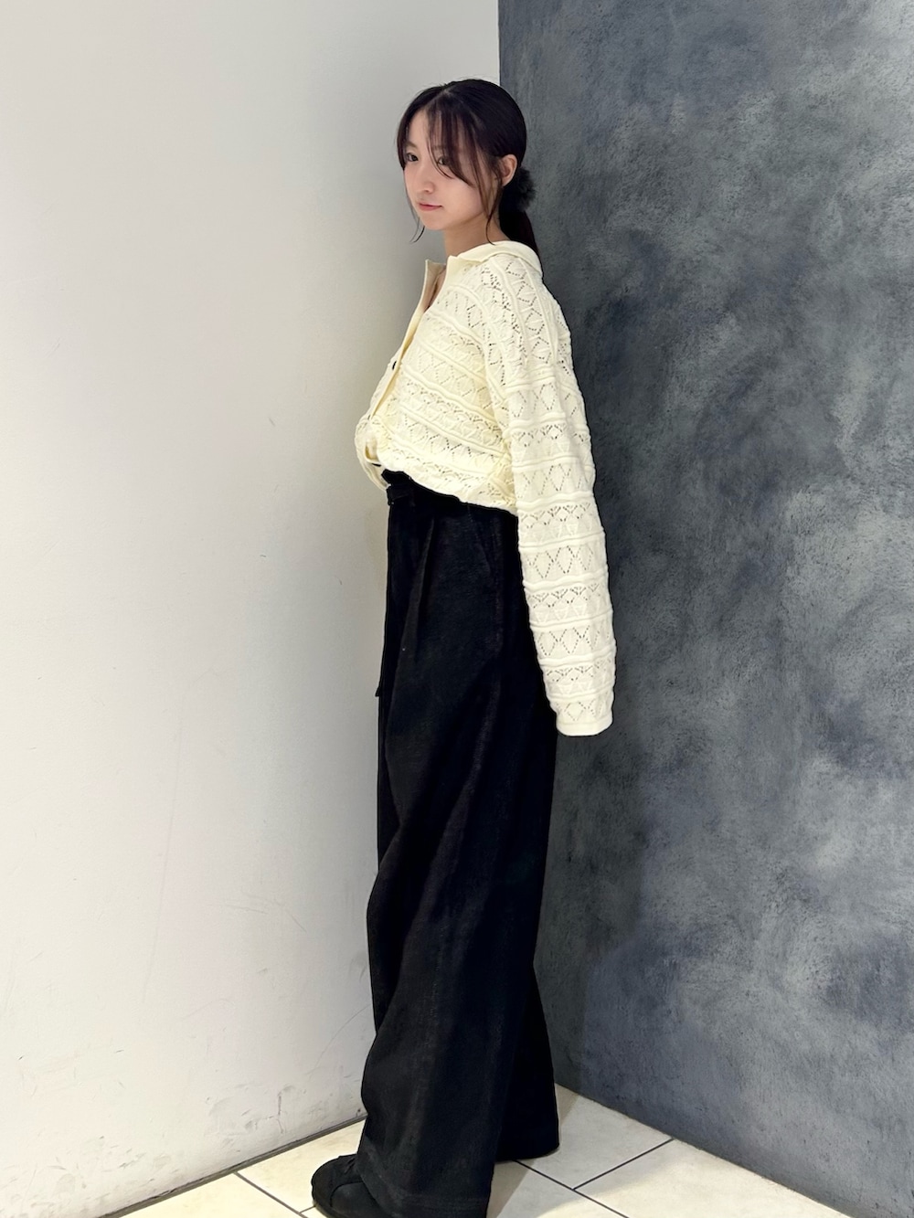 股上深め丈感長めなので、ベルトをギュッと絞ってハイウエストで履くとバランスがとりやすかったです💫