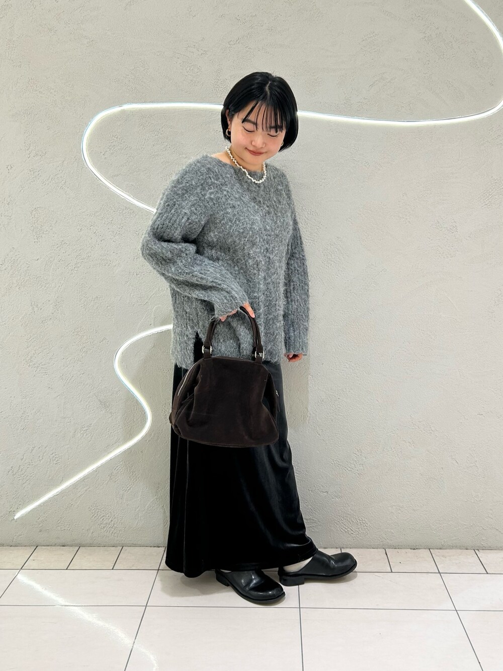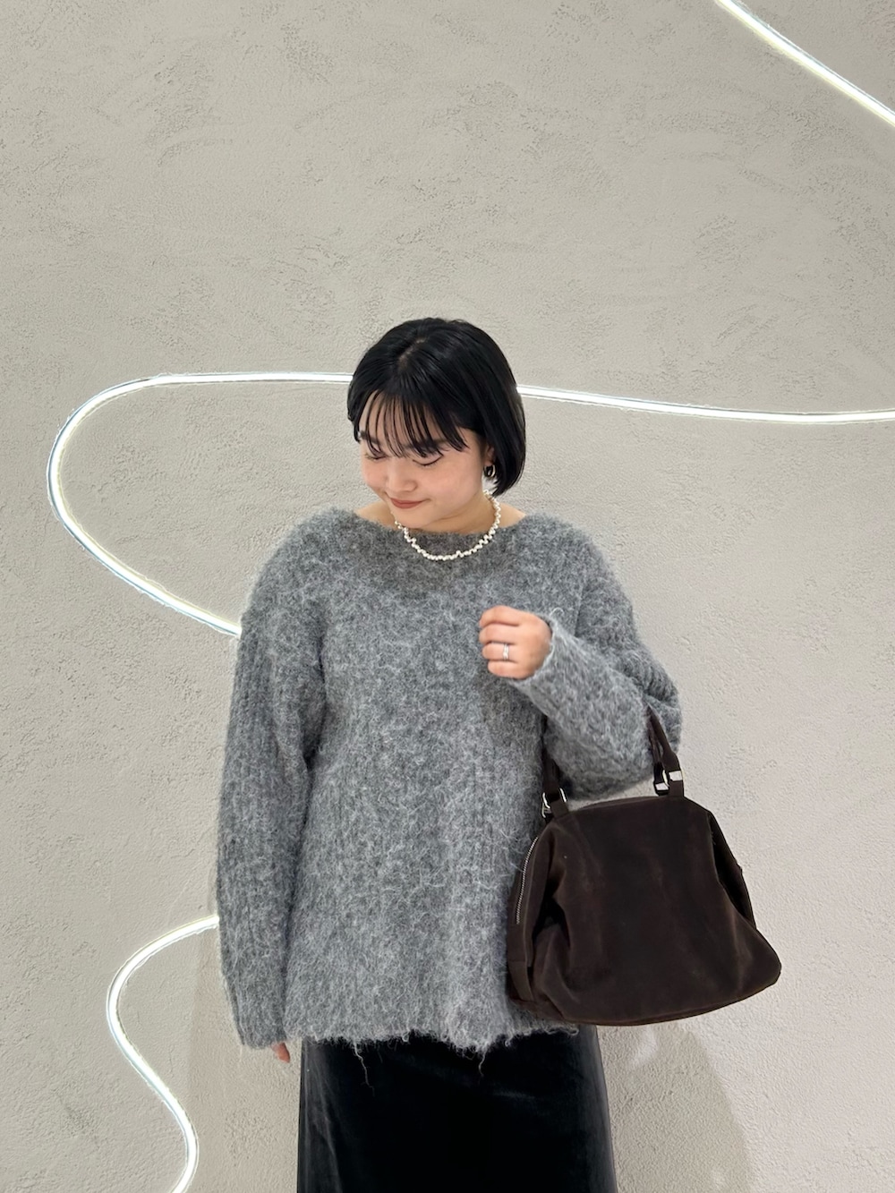 ニットとは違うゆるめなアイテムを合わせるのもおすすめです!