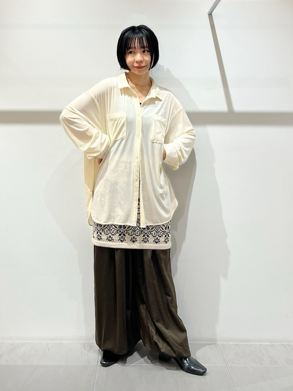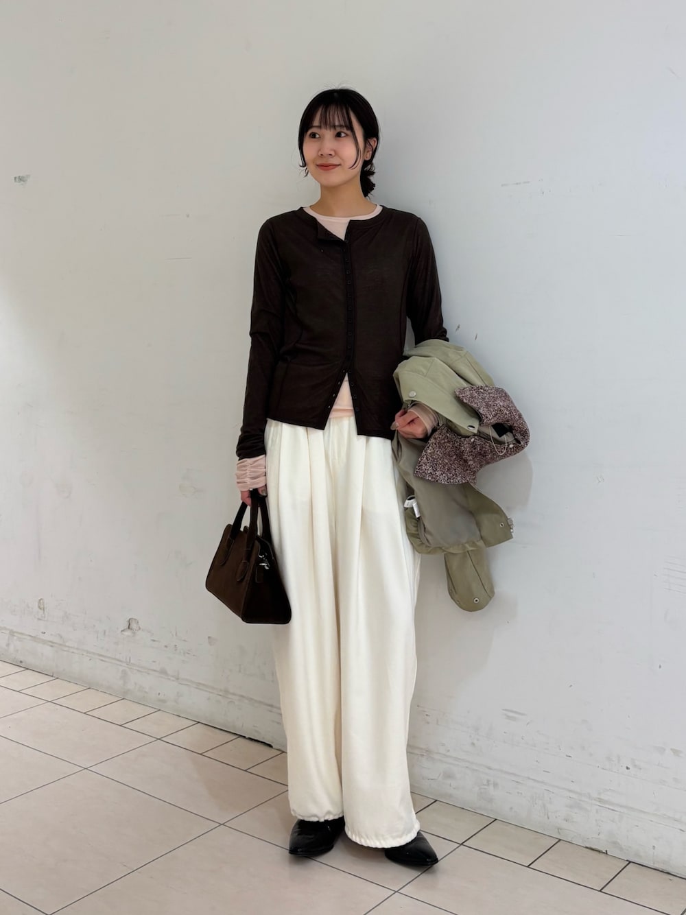 ジャケットとセットになっているビスチェは秋にTEEやシャツと合わせるとちょうどいいです。セットアップのパンツできちんと感を出しました。