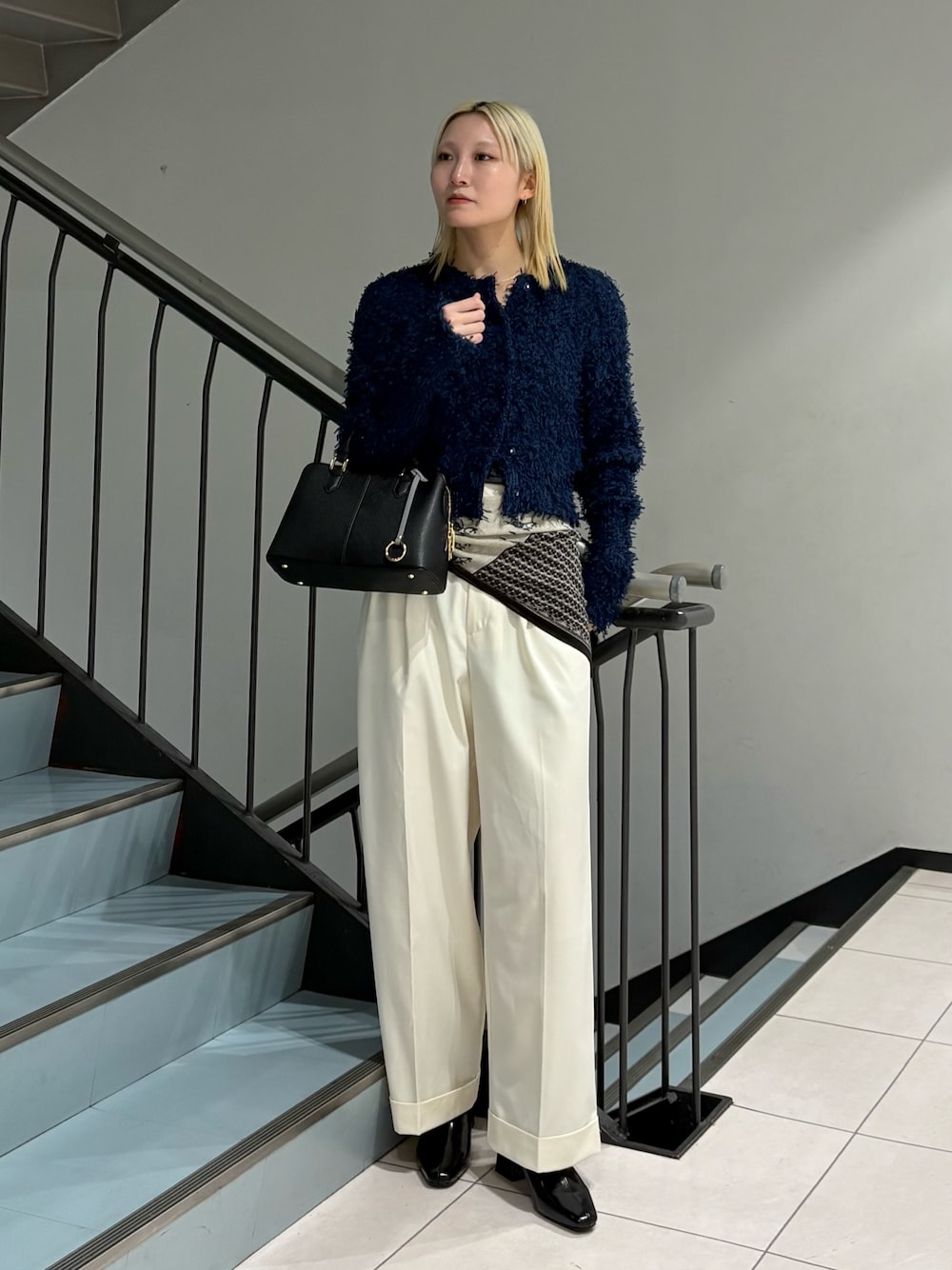 スラブMIXショートカーディガンはショート丈で、肉厚すぎないのでスッキリと着ていただけます!今はタンクトップやカップ付きキャミで合わせて寒くなったらカットソーやタートルネックで合わせるのもおすすめです✨