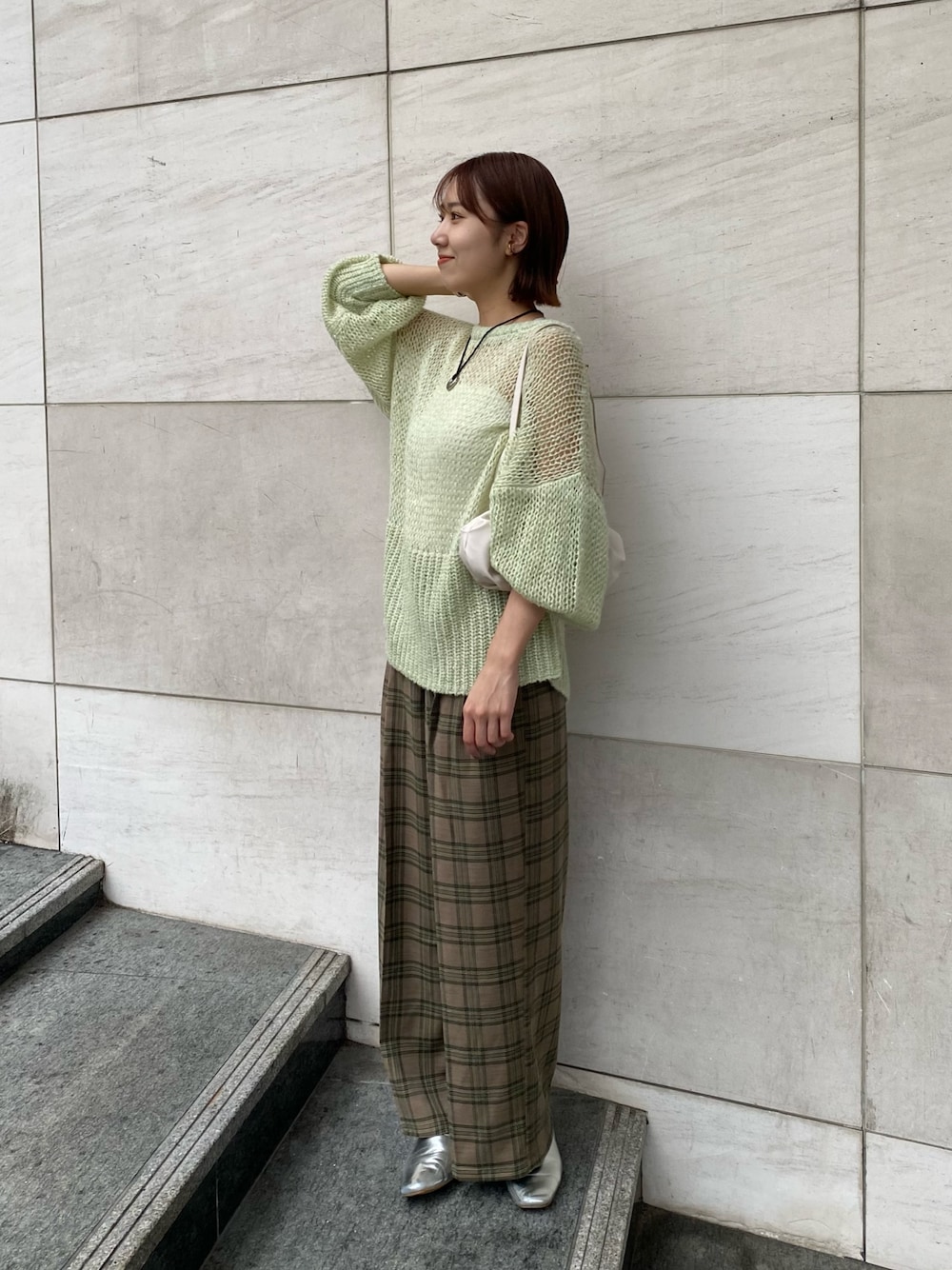 ルーズなシルエットと透け感がかわいいシアースパンコールニット💚
