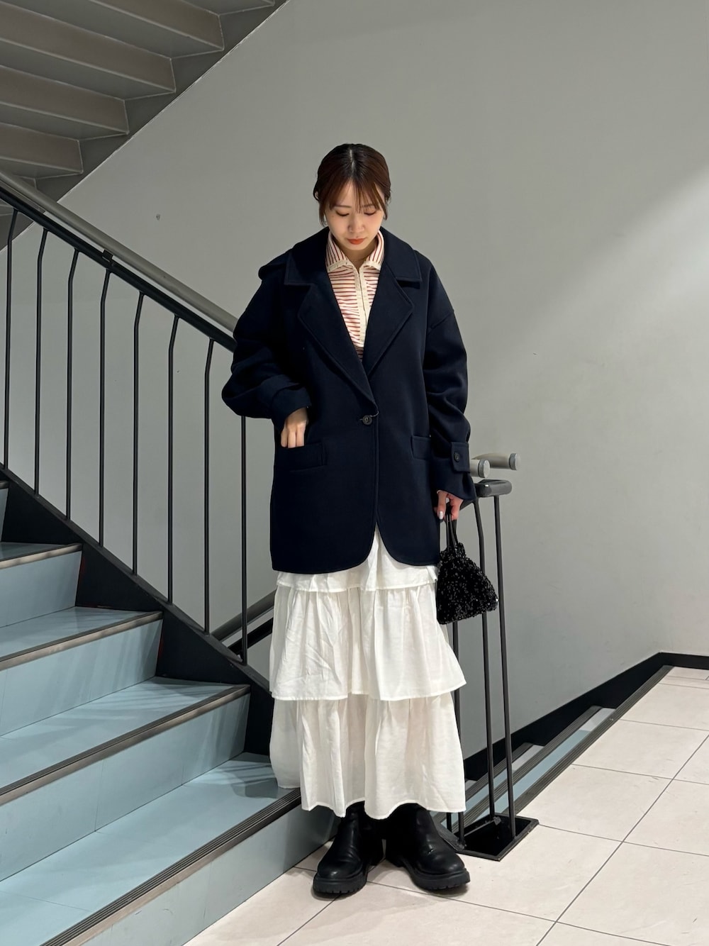 ティアードスカートが広がりにくく、甘くなりすぎないのが可愛いです🤍