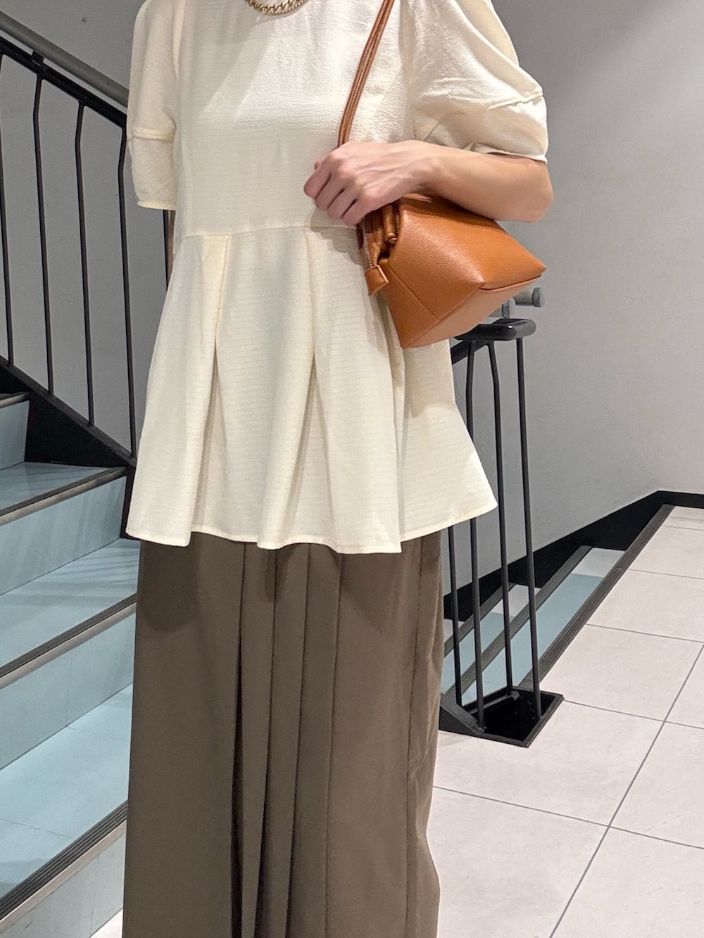ボリュームスリーブぺプラムトップスはゆったりとしたシルエットなので体のラインを拾いにくいアイテムです!