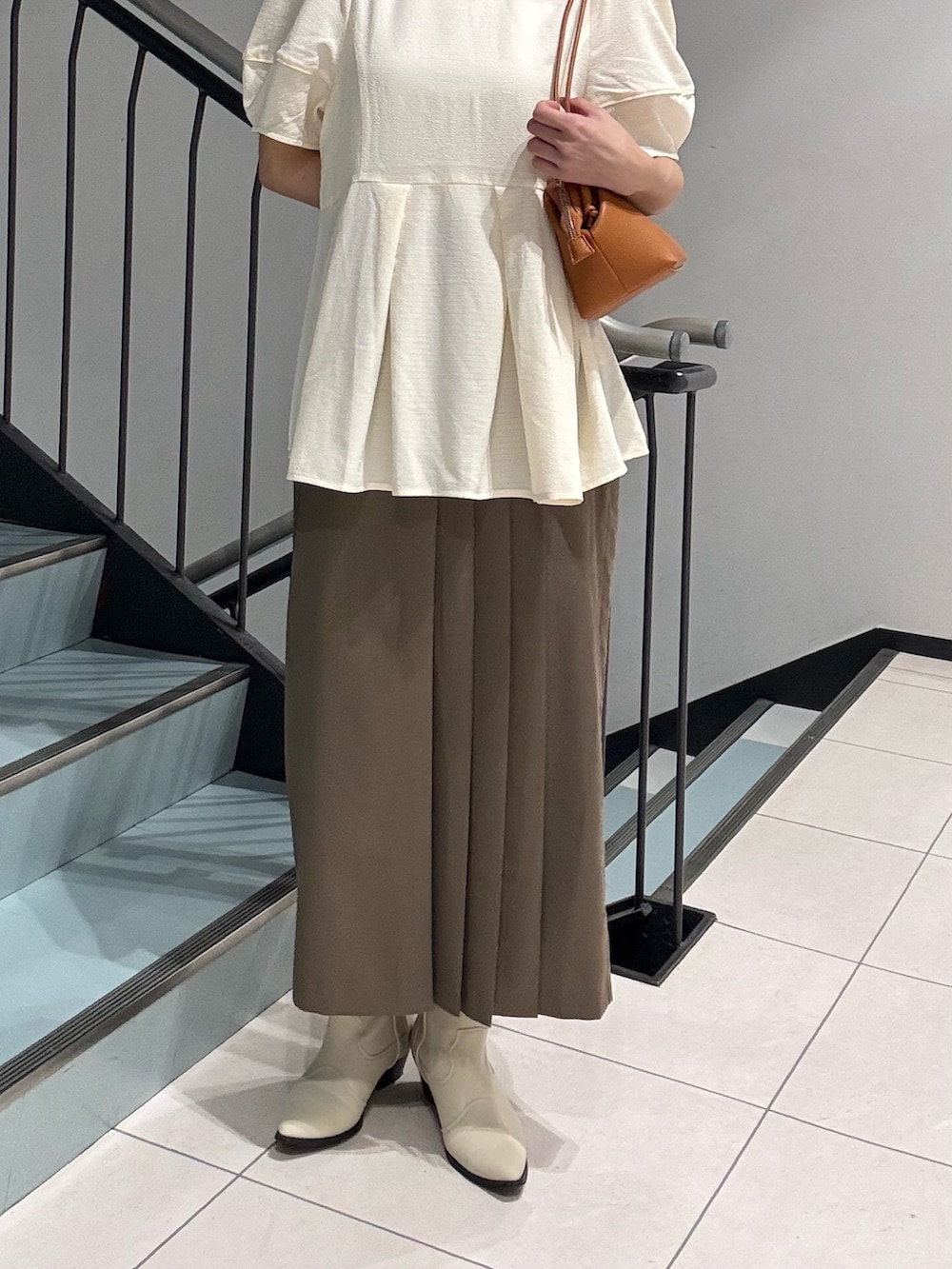 ラップライクプリーツスカートは高身長の私だと足首が見えるので私物のブーツと合わせました😊🤍