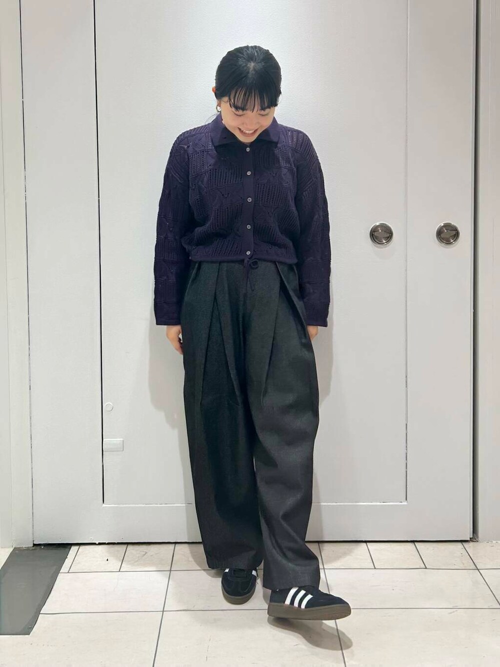 ボタンの開け閉めで雰囲気を変えられるカーディガンは、今すぐから着ることができておすすめです💪