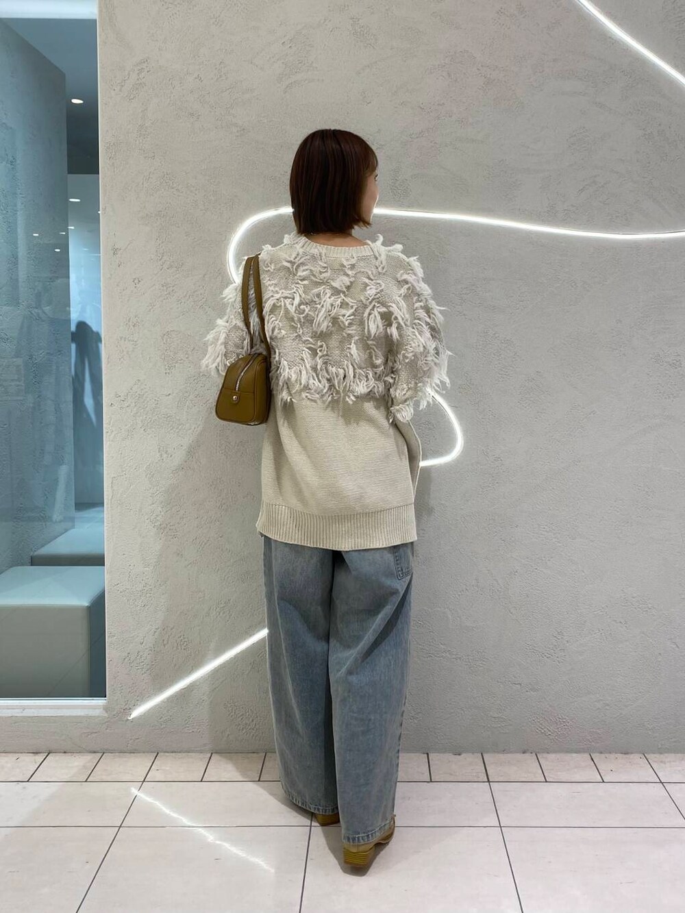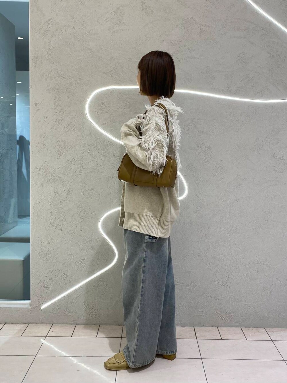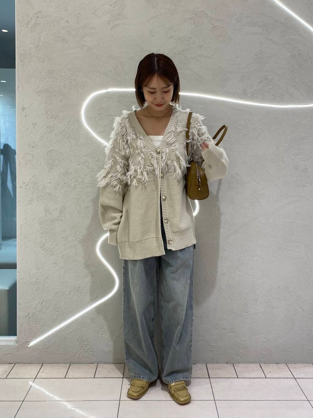 ジャガードフリンジカーディガンがルーズなシルエットが可愛く、淡い色のデニムで合わせてみました!