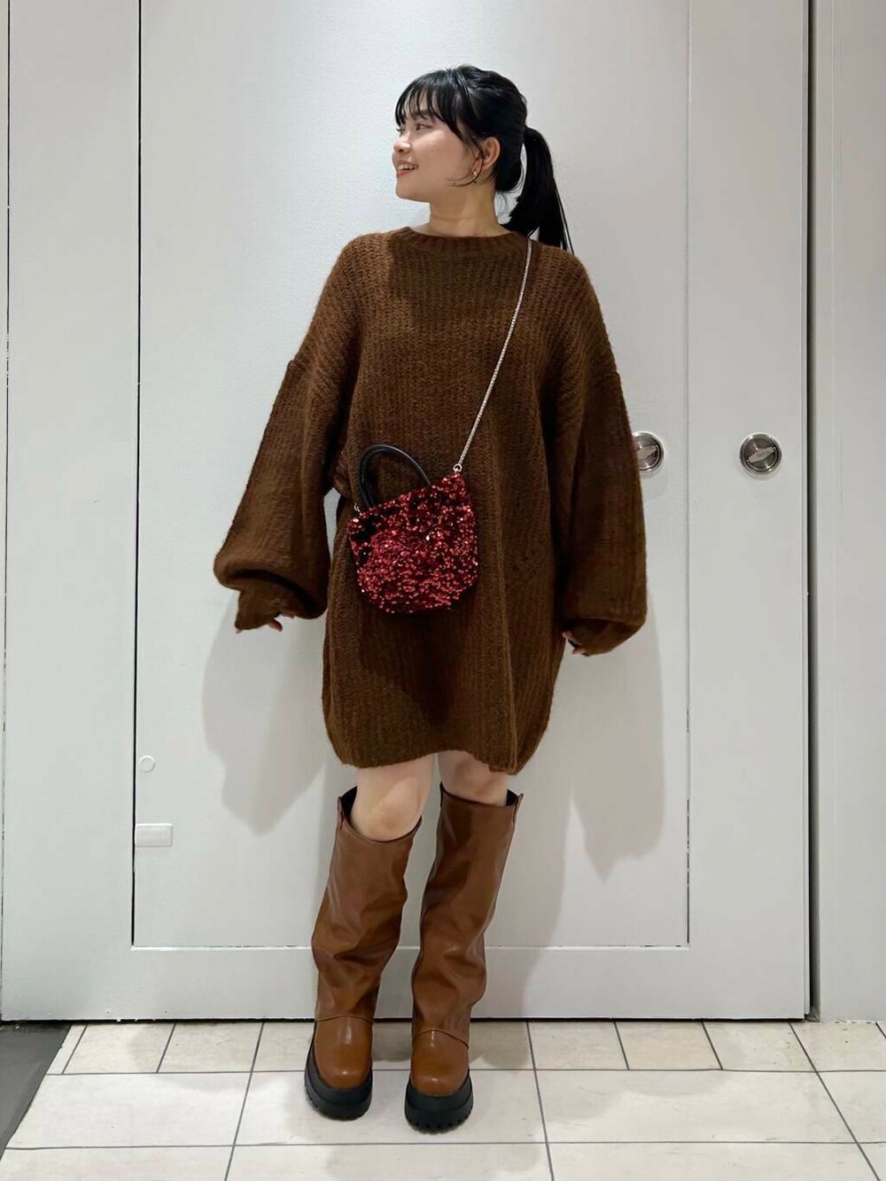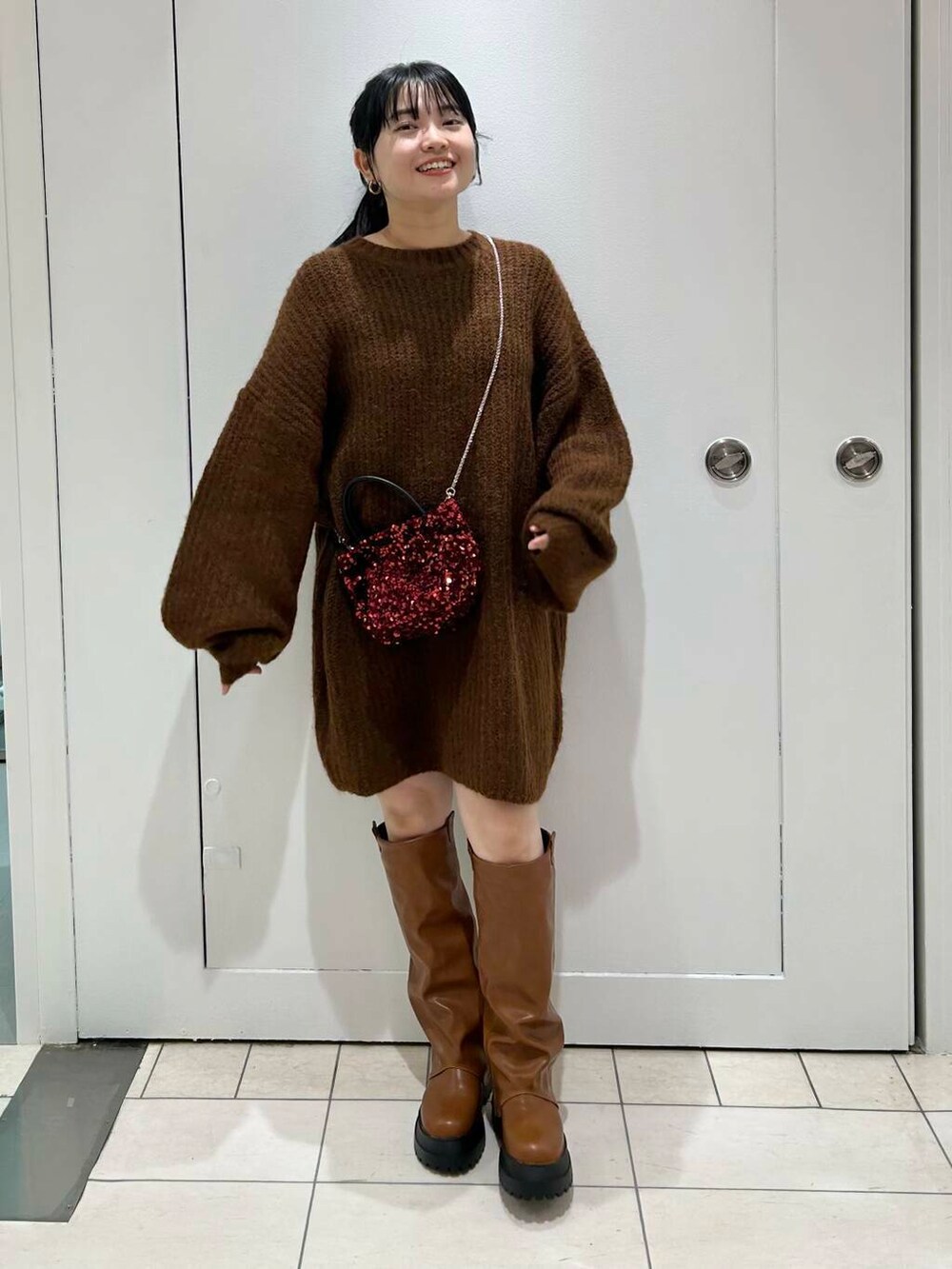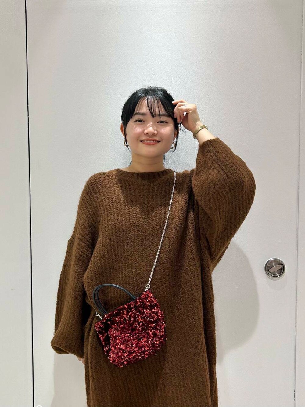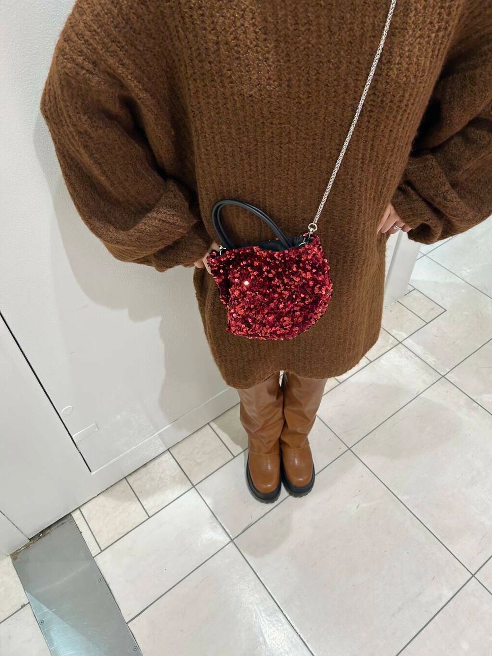 スパンコールのバッグが上手く映えるコーデです🫶