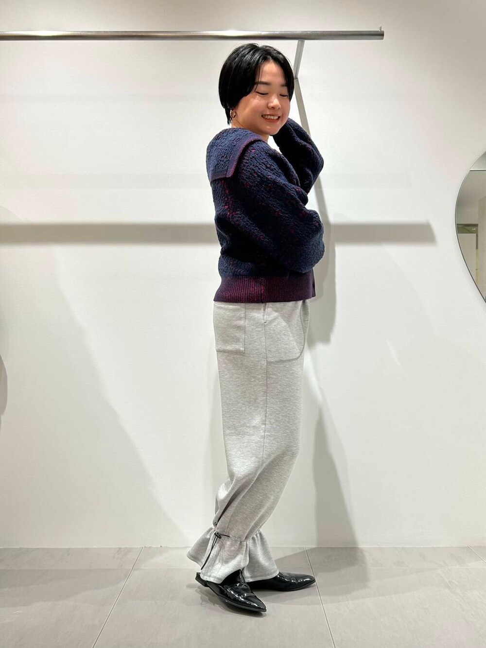 スウェットパンツ風な、キャンディーヘムパンツと合わせました!