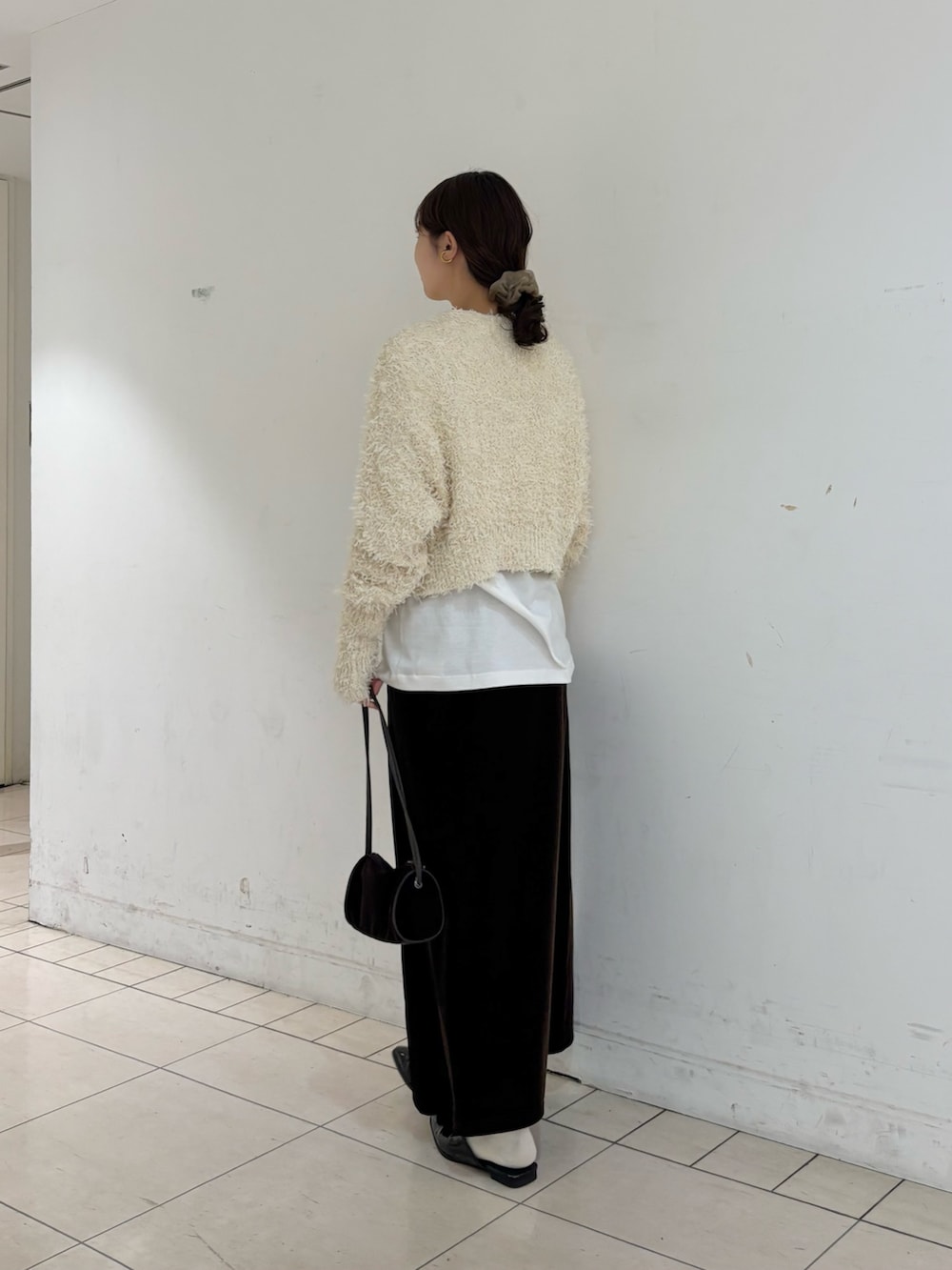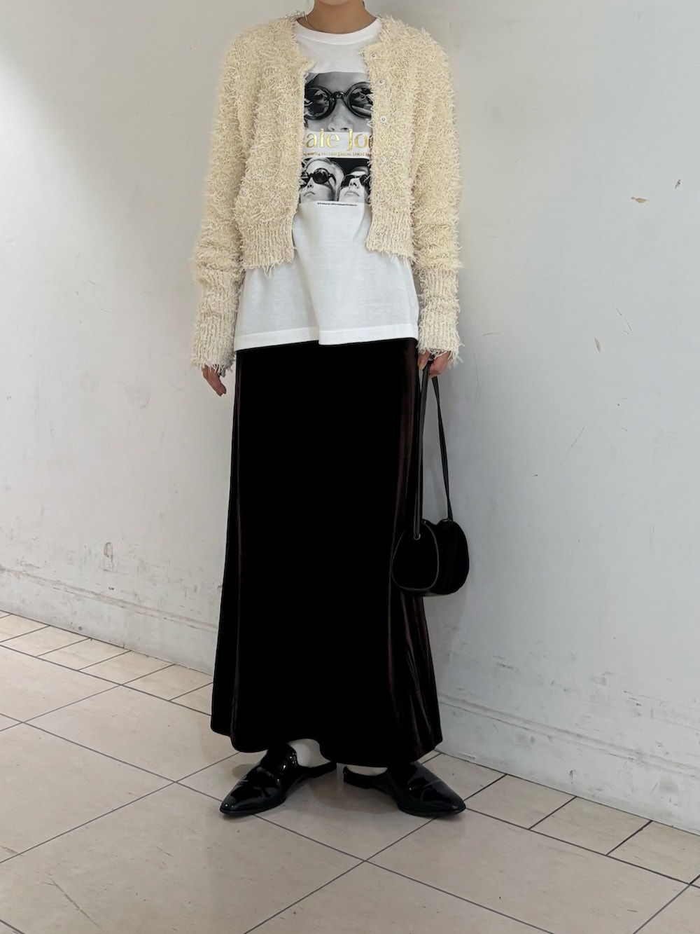 チュールフリンジカーディガンはボタンを止めて一枚できても可愛いですが、プリントやロゴTEEなどの上から羽織るのも可愛くておすすめです〜🤍