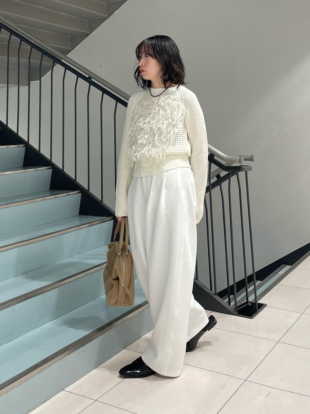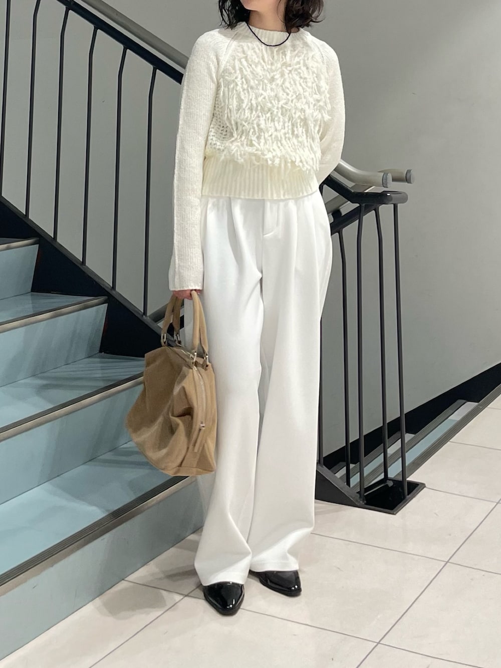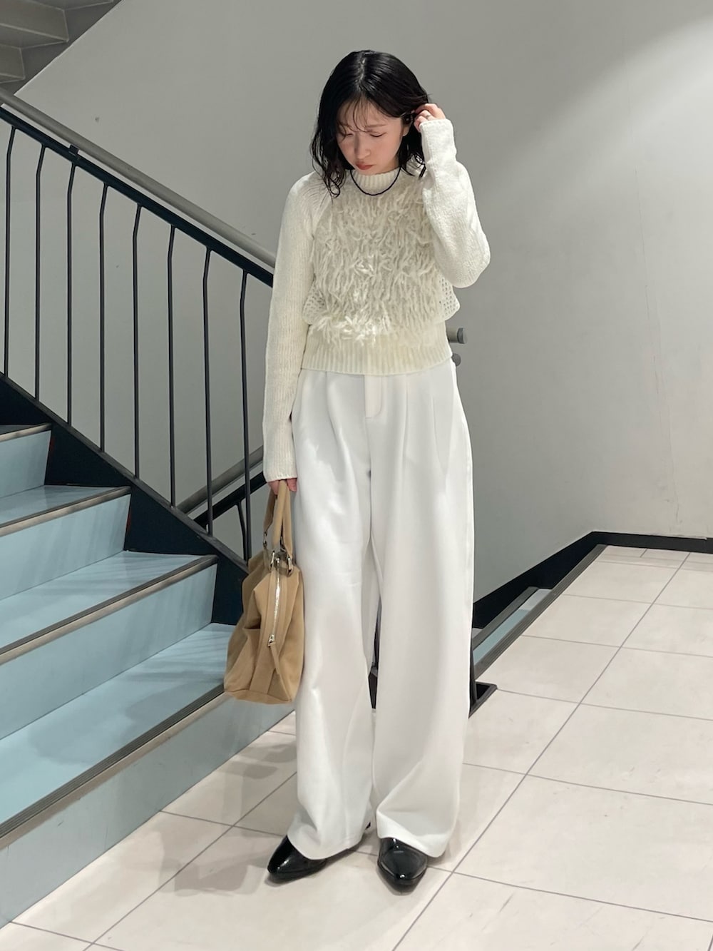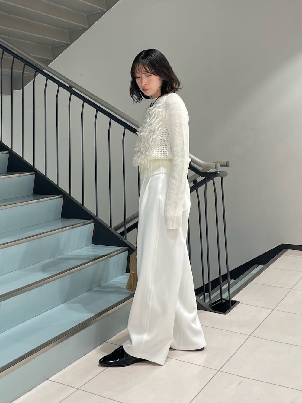 パンツは154cmでぺたんこギリギリ履けます!が、白なので私だったら厚底かローファーなどの3〜5cmヒールがあるものを合わせたいです…!