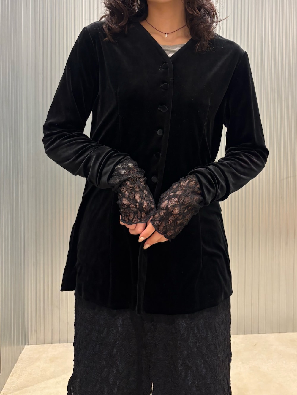 ベロアカーディガンは肌触りがよく柔らかい素材なので自分の体のラインにそってスッキリと着ていただけます☺️