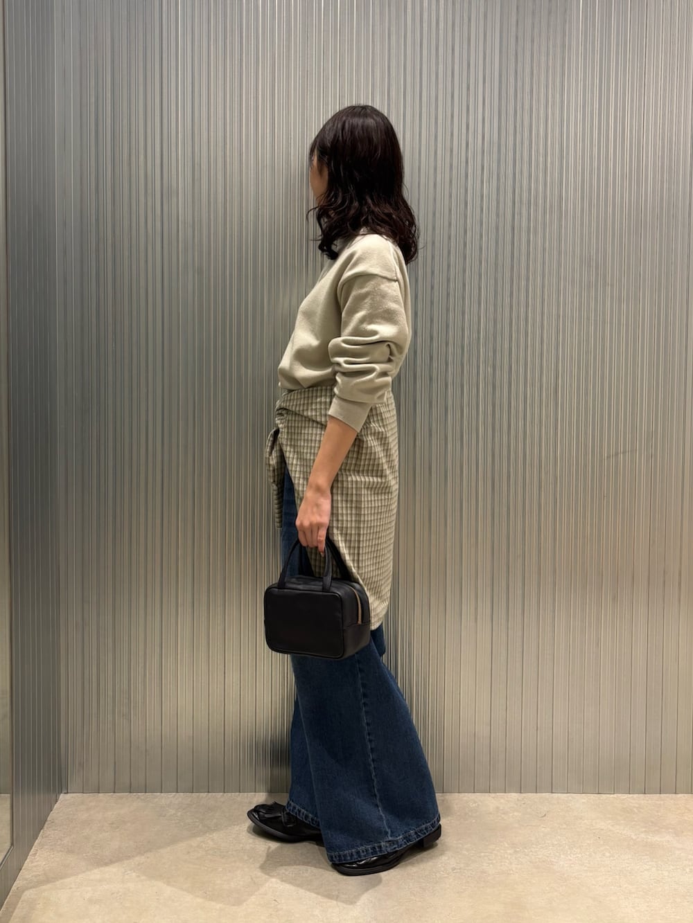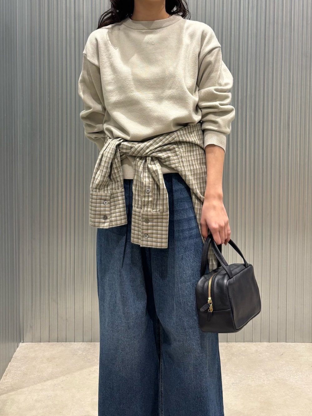 シンプルコーデになりすぎないようトップスの色に近いチェックシャツを腰巻きをして、少しアレンジを加えてみました〜✨